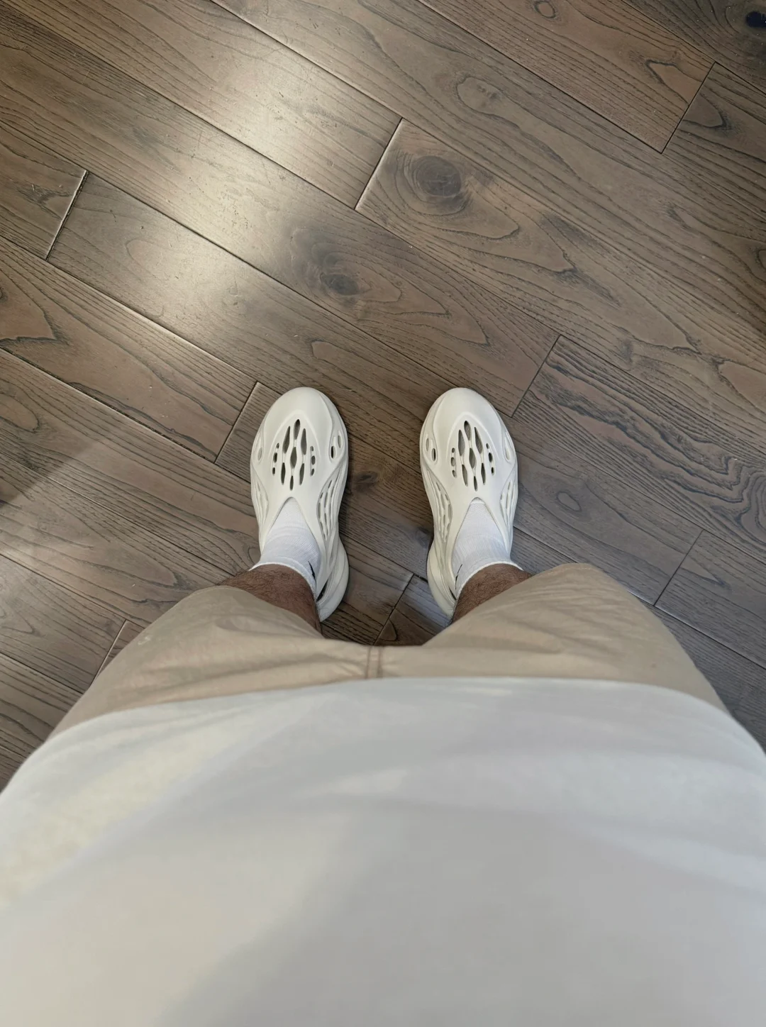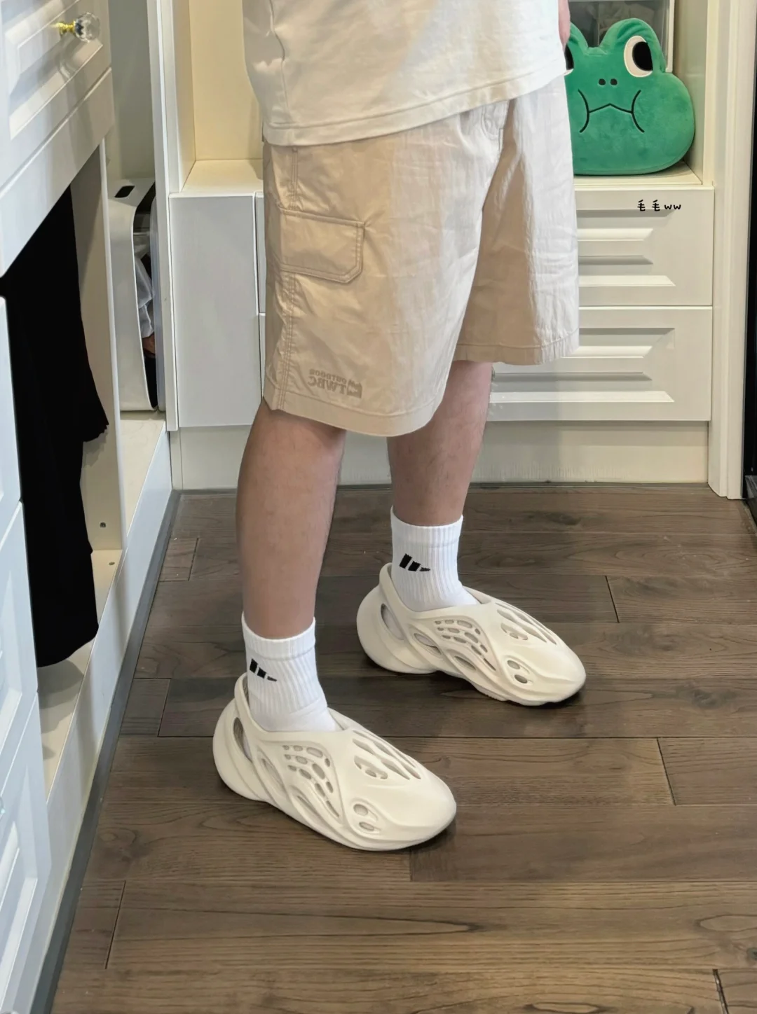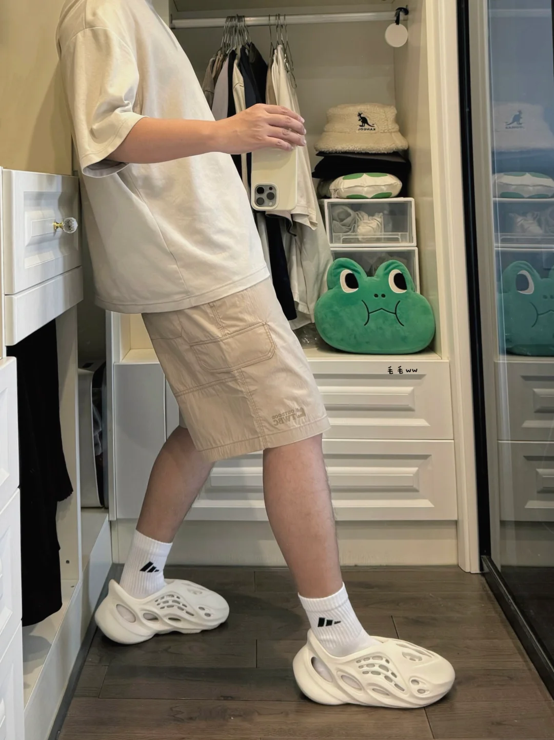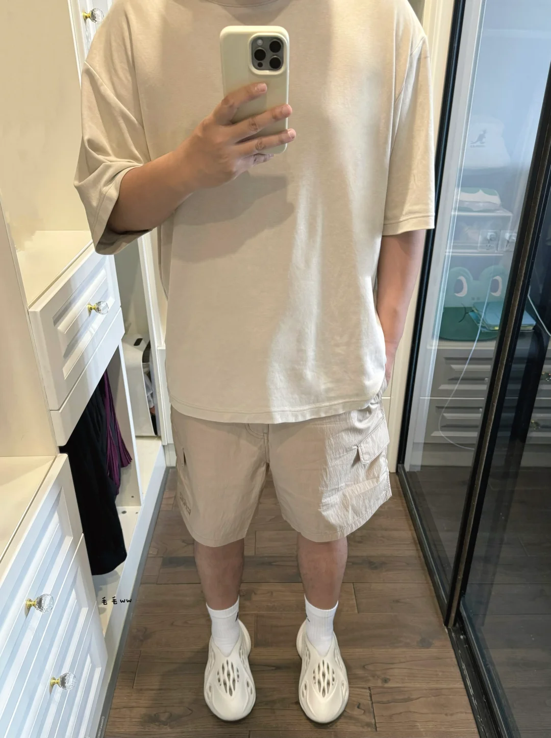 -浅卡其搭配米色系,低饱和度极简夏日穿搭 -YZY洞洞鞋,第四个年头了,我居然还在穿 . —————— . 👕Uniqlo U // XXL . 🩳Teenie Weenie Men // XL . 🩴YEEZY Foam Runner // 44.5 . —————— . ✏️本人178cm75kg 球鞋尺码265mm(正常EU42) . 💭以上均为我个人观点,不喜勿喷,欢迎讨论。