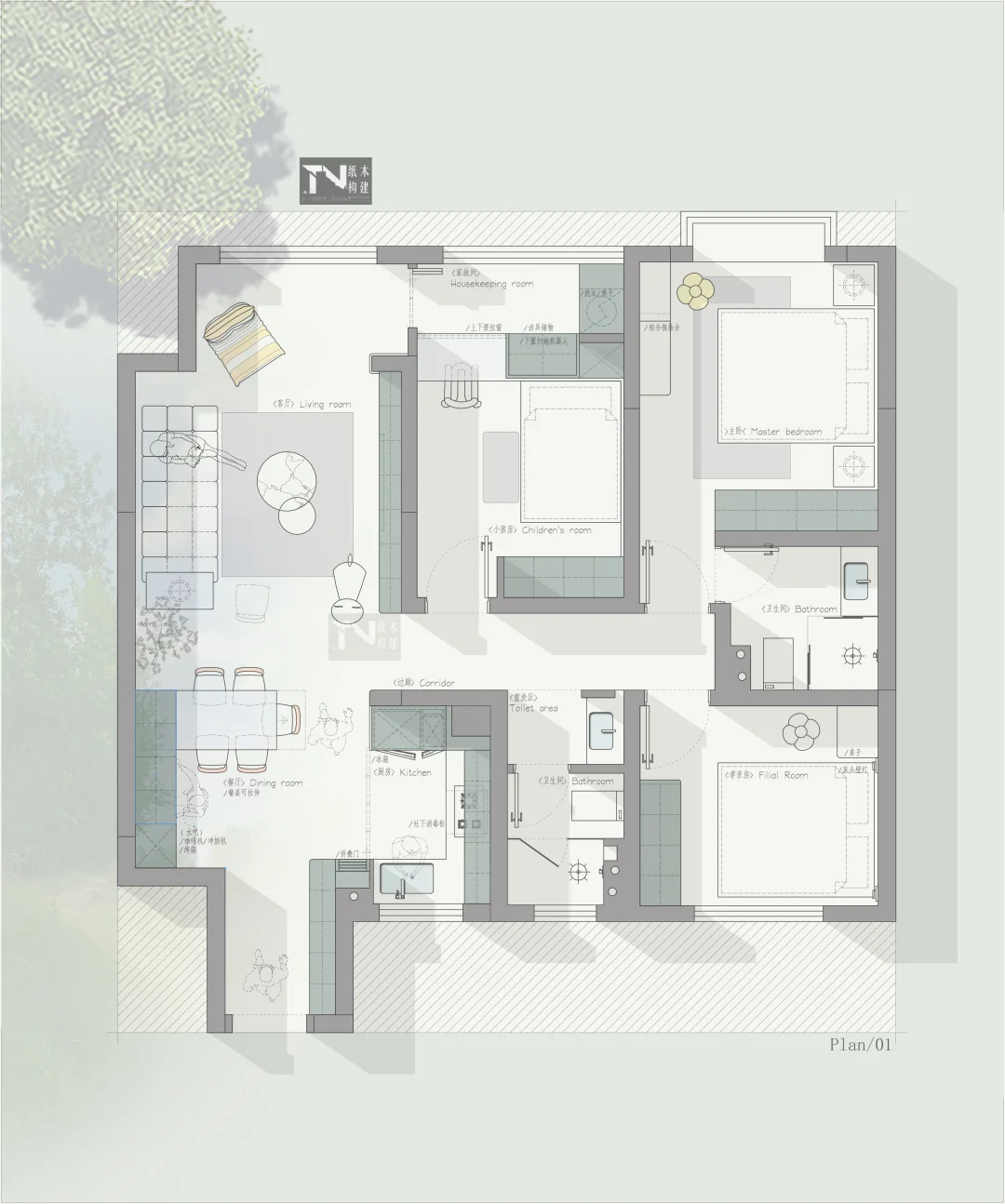 四叶草户型01/中段入户户型,一户三稿