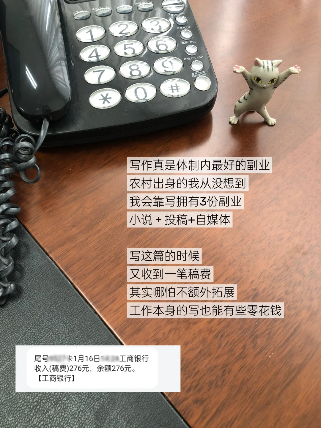写作真是体制内最好的副业。小说+投稿+自媒体,让我每月副业过万、已超主业,占据家庭2/3收入。最近队友工资迟发[喝奶茶R],生活也没受影响。