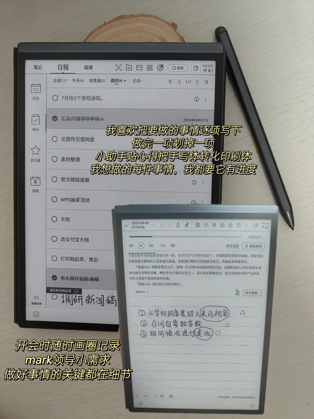 每日工作计划都留出空档接纳临时任务,做不完就列到明日日程计划,领导临时交办工作可在讯飞办公本Air 2手写,直接收录日程。工作是永远干不完的,完成重点紧急的工作就可以下班了,其他的看状态,干到65呢不用急这一会。