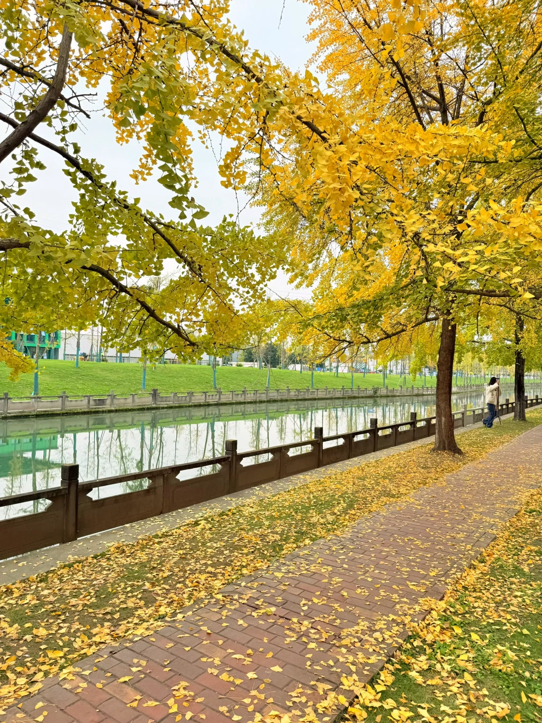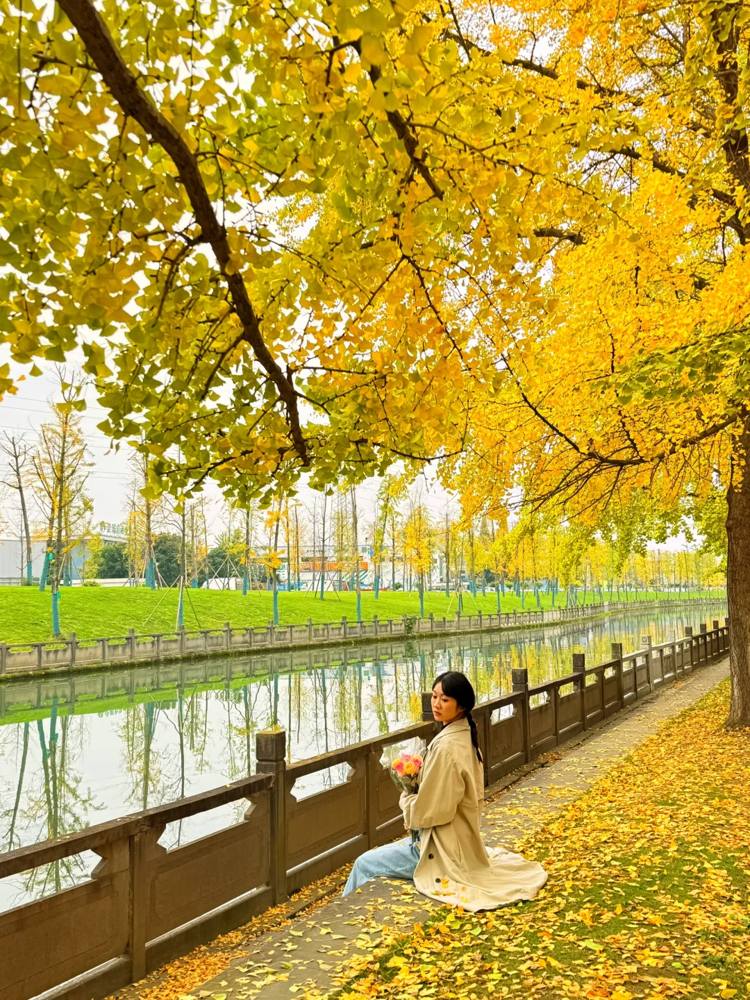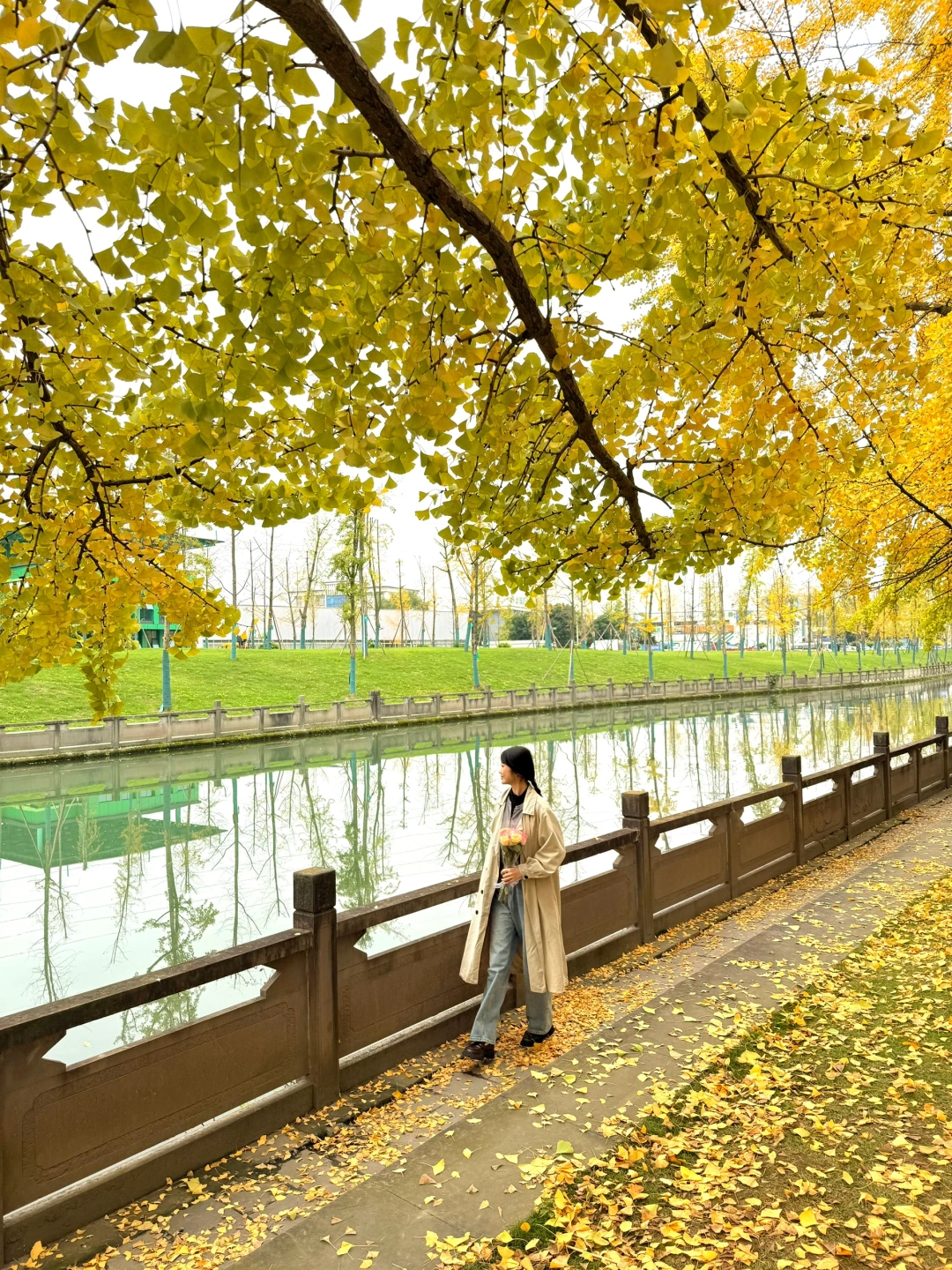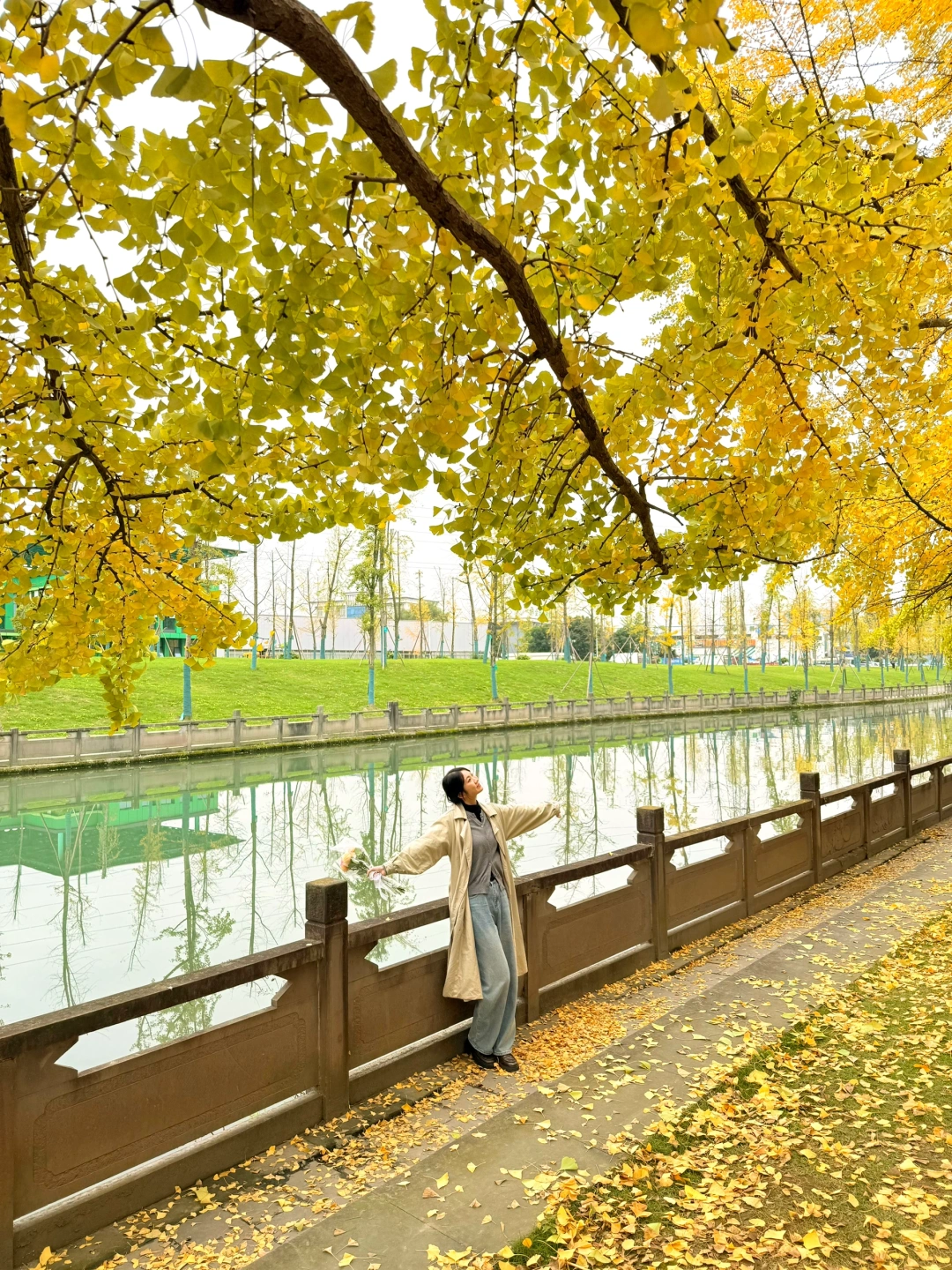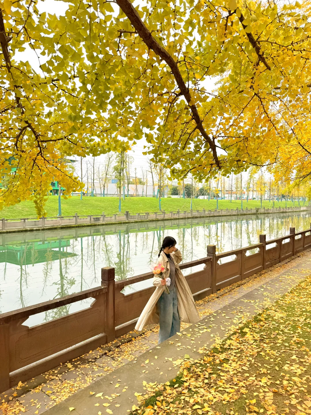 每年都来!!每年都觉得美!! 目前这里的银杏黄叶进度已经90% 地面也铺上落叶啦 来拍照的人尤其的少!真的不敢想 如果是晴天的话得有多美!! 📍双流蛟龙港活水公园 🅿️开车的话可以停路边