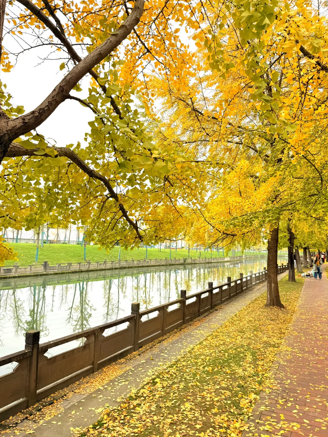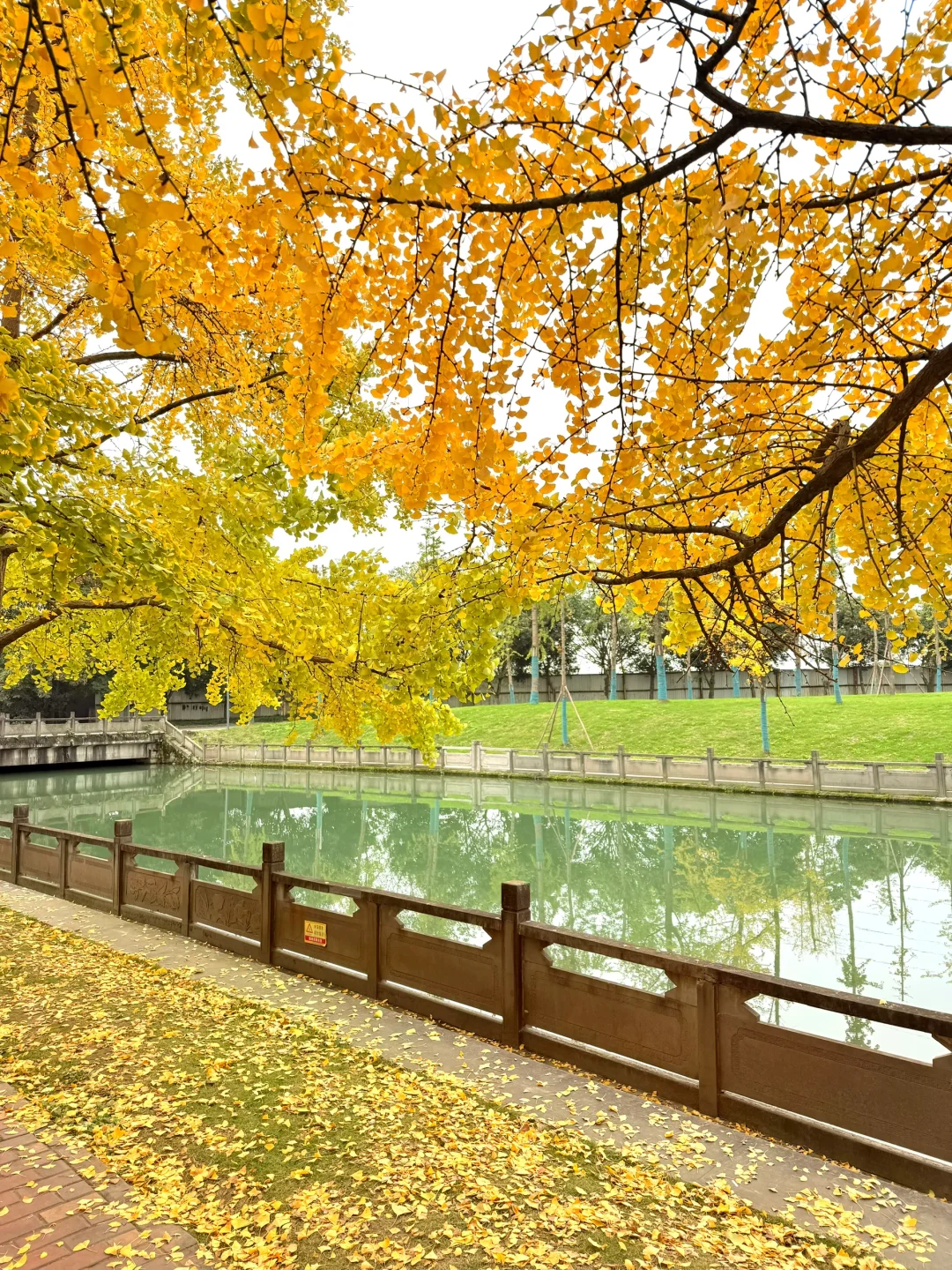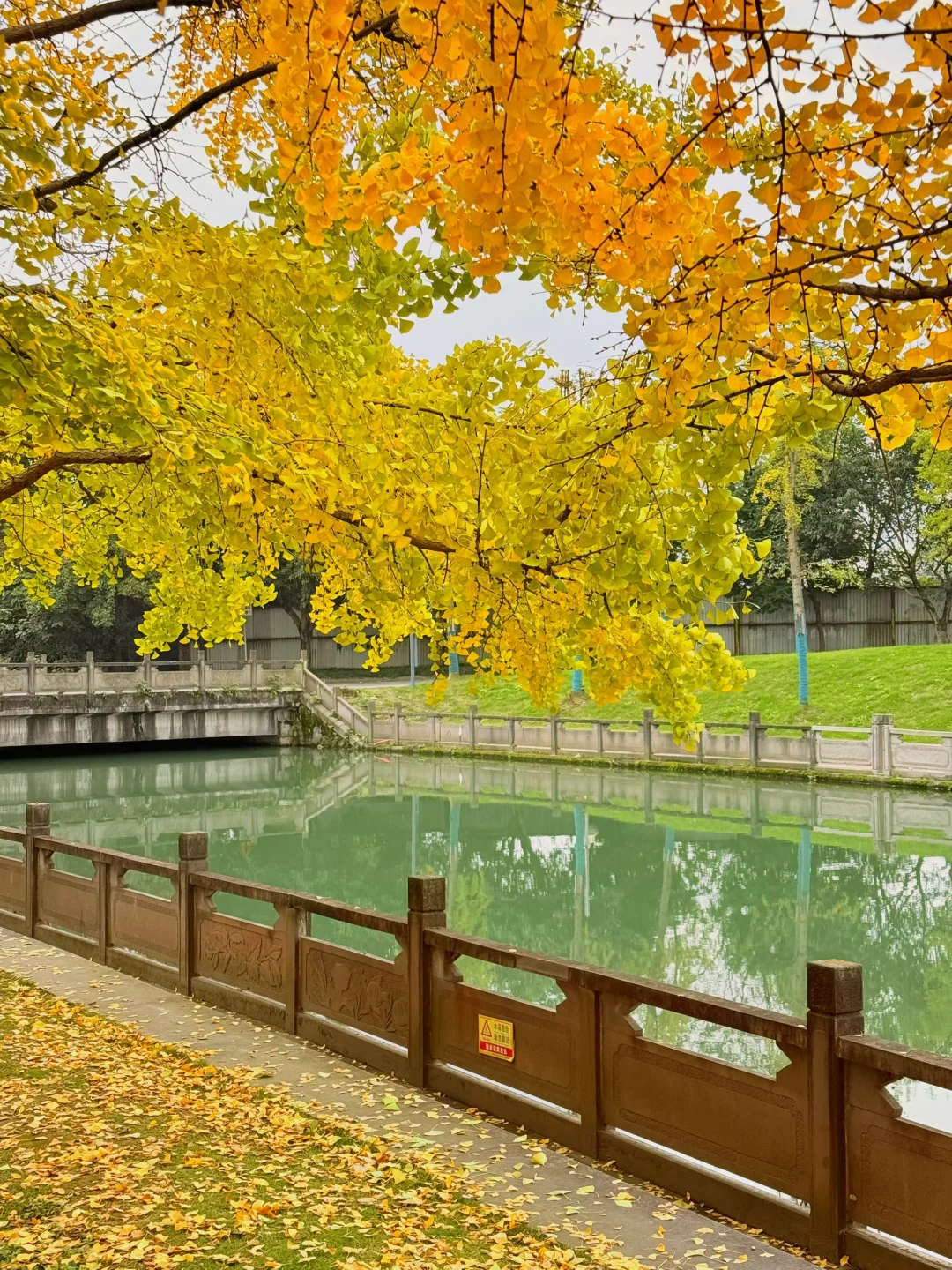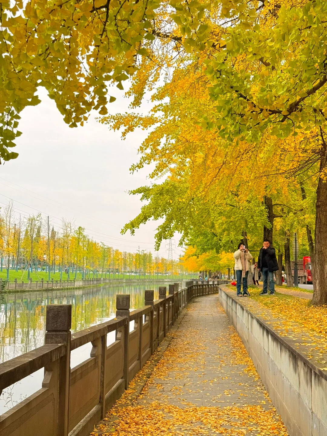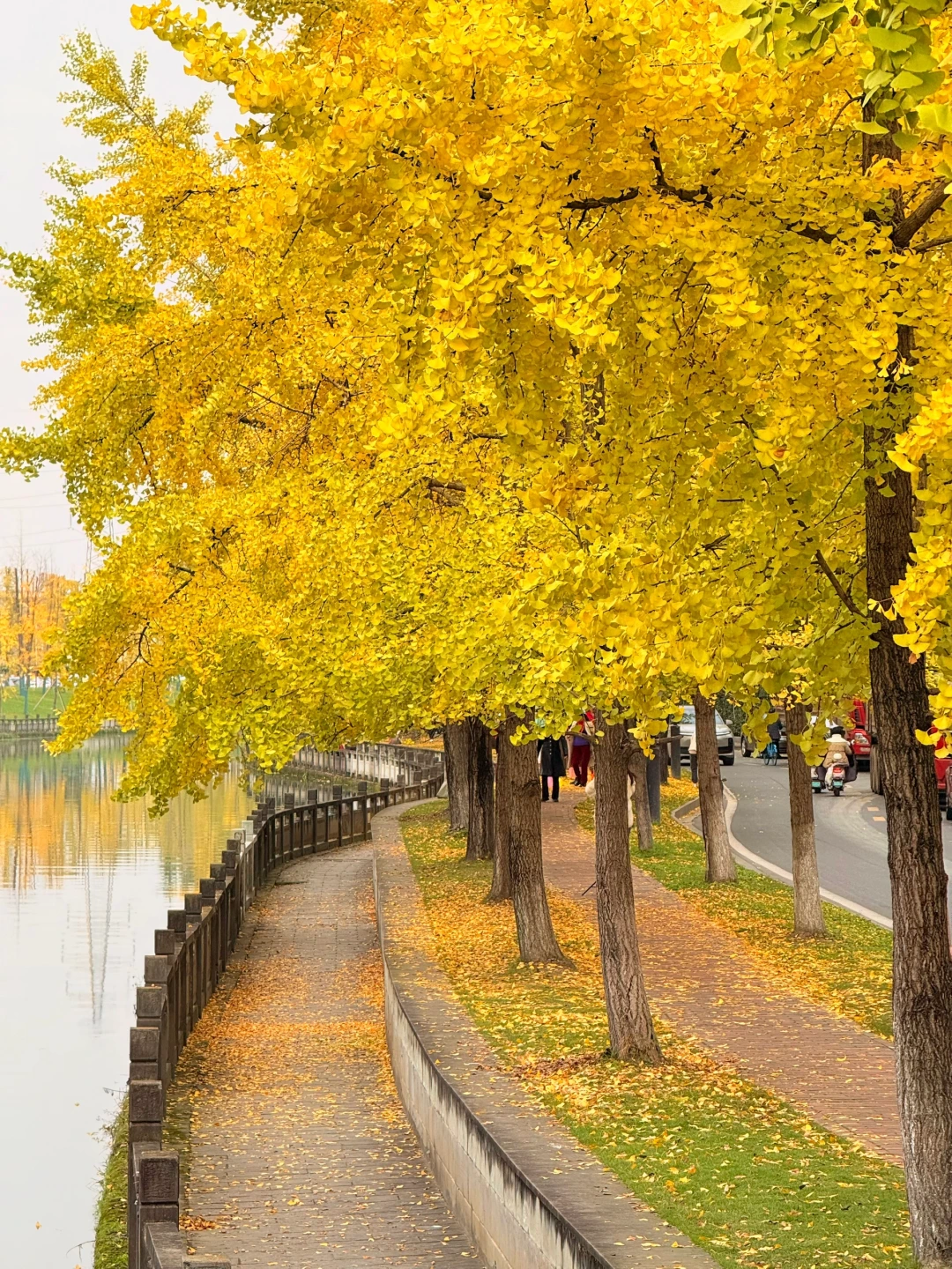 每年都来!!每年都觉得美!! 目前这里的银杏黄叶进度已经90% 地面也铺上落叶啦 来拍照的人尤其的少!真的不敢想 如果是晴天的话得有多美!! 📍双流蛟龙港活水公园 🅿️开车的话可以停路边