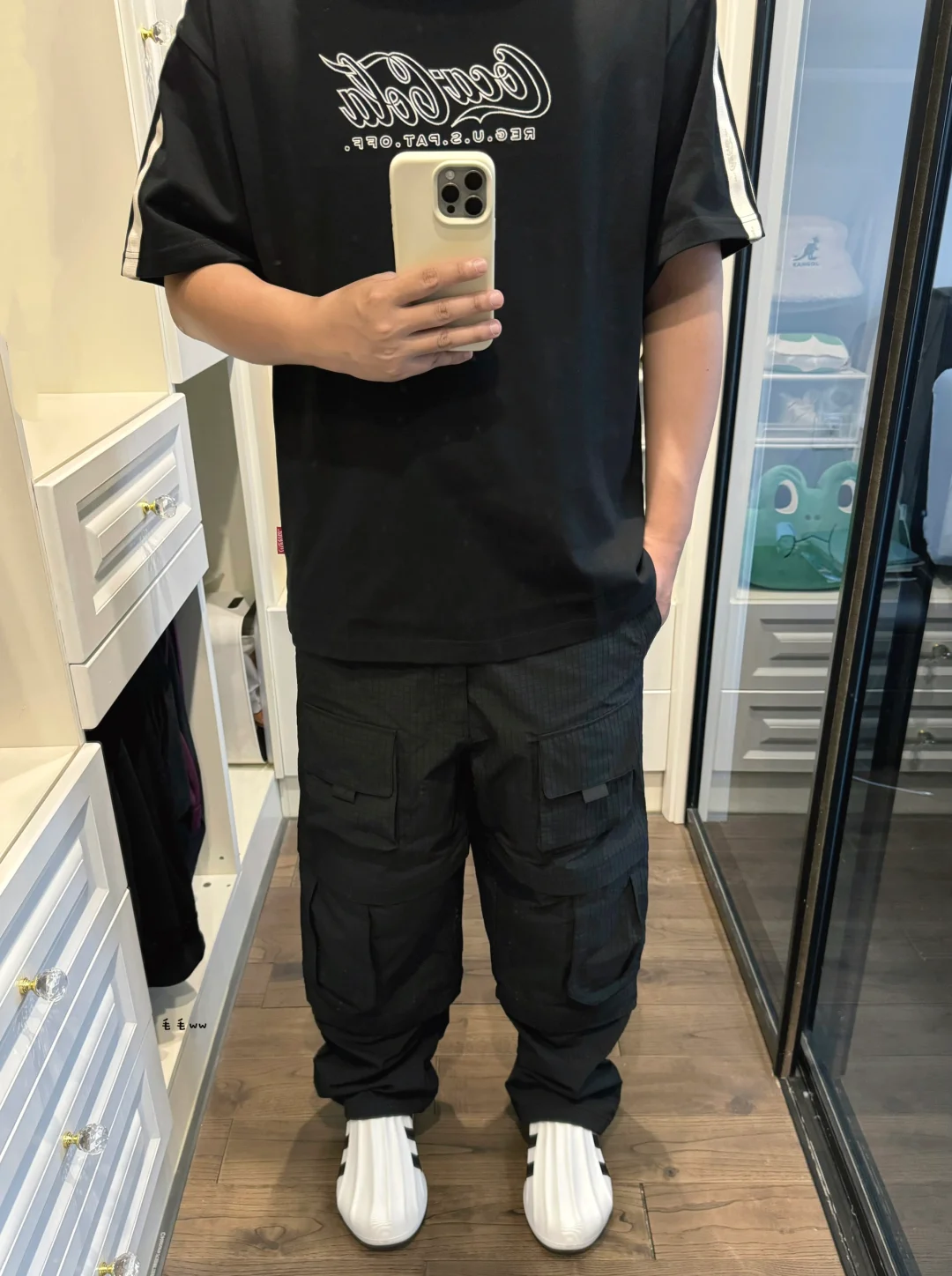 -极简夏日穿搭,全黑色系酷酷子;三合一工装裤搭配胖胖的洞鞋,整体风格非常和谐 . —————— . 👕Coca-Cola / 可口可乐 // XL . 👖Expensive Taste // L . 👟Adidas adiFOM / Superstar // 43 . —————— . ✏️本人178cm75kg 球鞋尺码265mm(正常EU42) . 💭以上均为我个人观点,不喜勿喷,欢迎讨论