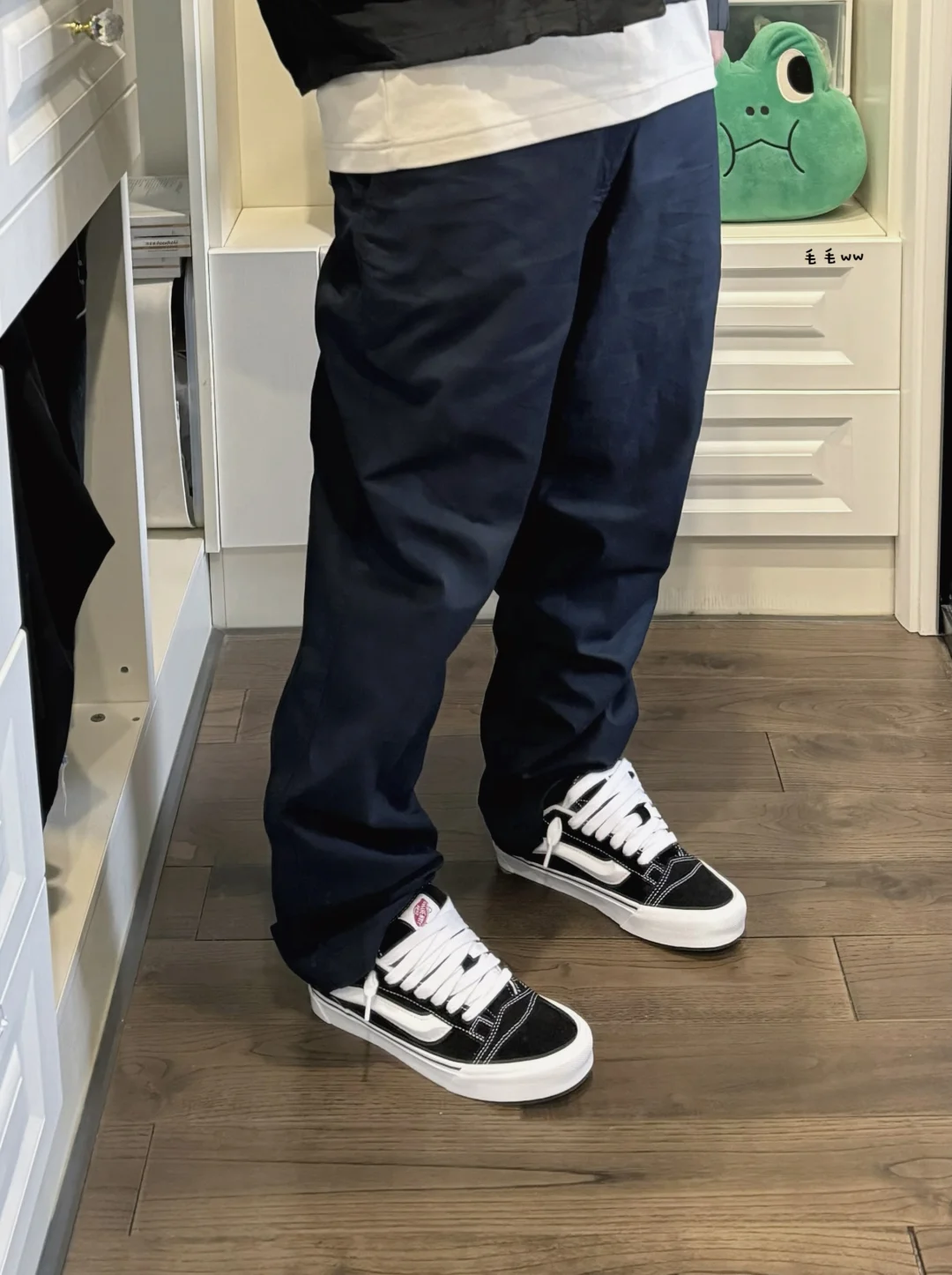 -万斯怎么选,首推黑白经典,正适合当下的春季叠穿,搭配工装裤毫无违和感 . —————— . 👔Uniqlo U // L . 👖Teenie Weenie Men // XL . 👟VANS Knu Skool // 41 . —————— . ✏️本人178cm75kg 球鞋尺码265mm(正常EU42) . 💭以上均为我个人观点,不喜勿喷,欢迎讨论。