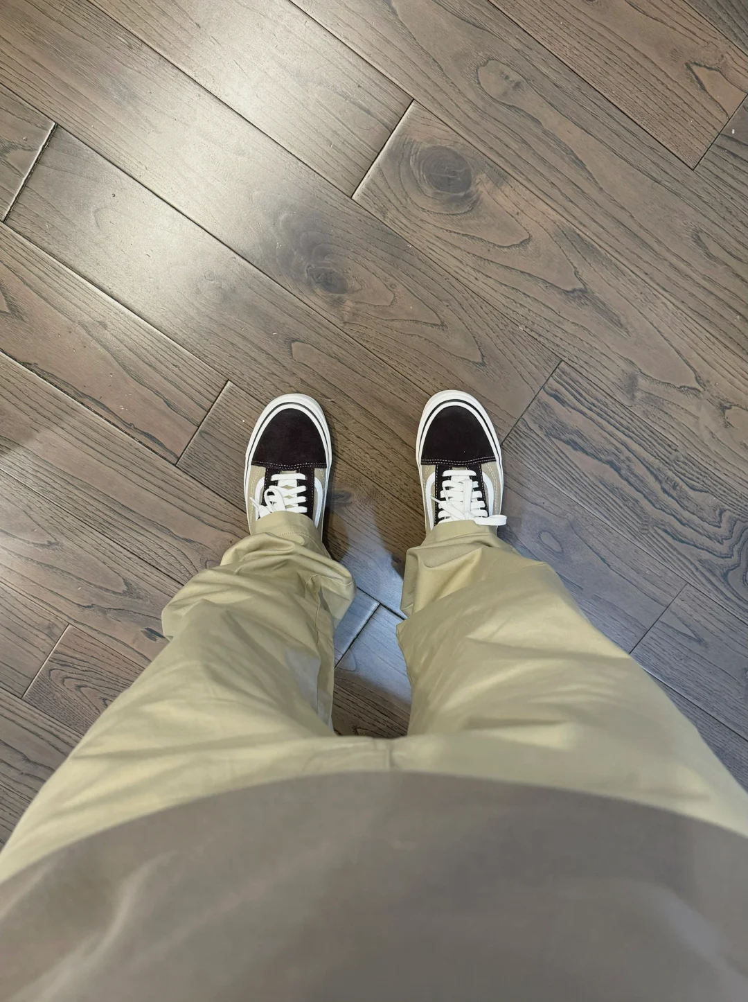 护膝不放裤子里面,放裤子外面,这绝对的人才,看不懂这是怎么一个穿法?还有一点