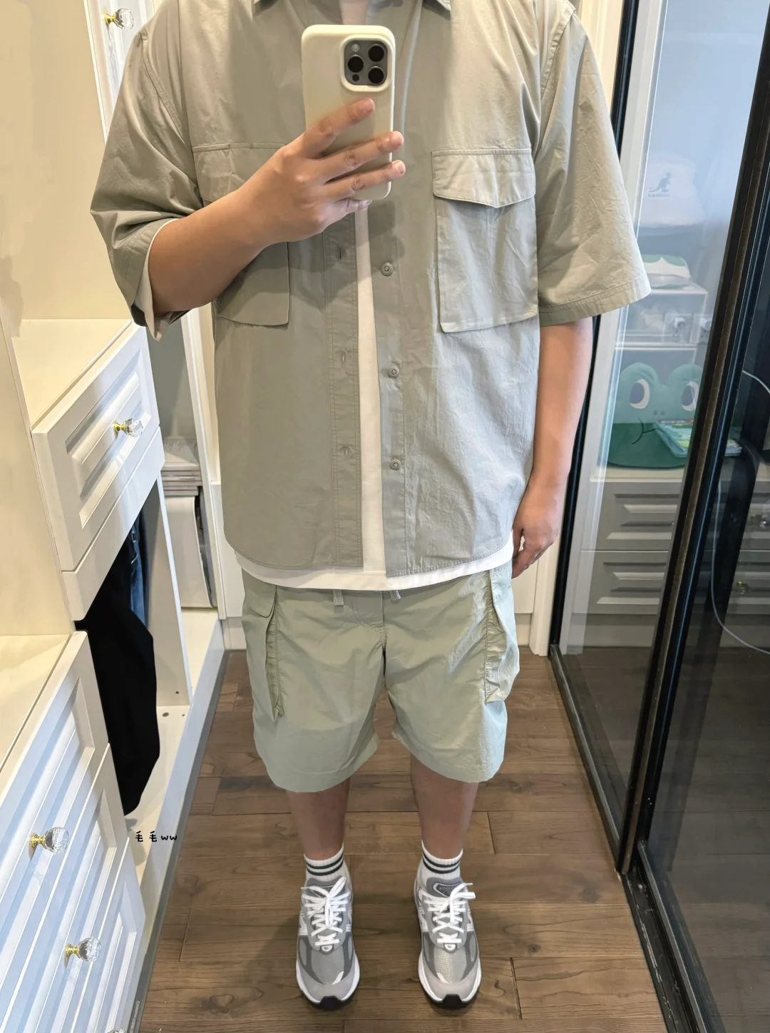 -低饱和度绿色系,耐看也容易搭配,实物比豆沙绿更浅,略带烟灰色 . -近色系穿搭,工装衬衫&口袋短裤,再踩一双复古慢跑鞋即可 . —————— . 👕Uniqlo U / 476245 // L . 🩳Uniqlo U / 467159 // L . 👟NewBalance 990v6 // 42 . —————— . ✏️本人178cm75kg 球鞋尺码265mm(正常EU42) . 💭以上均为我个人观点,不喜勿喷,欢迎讨论。