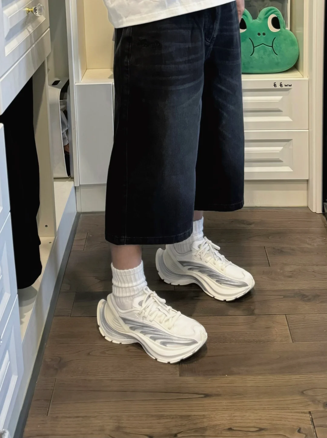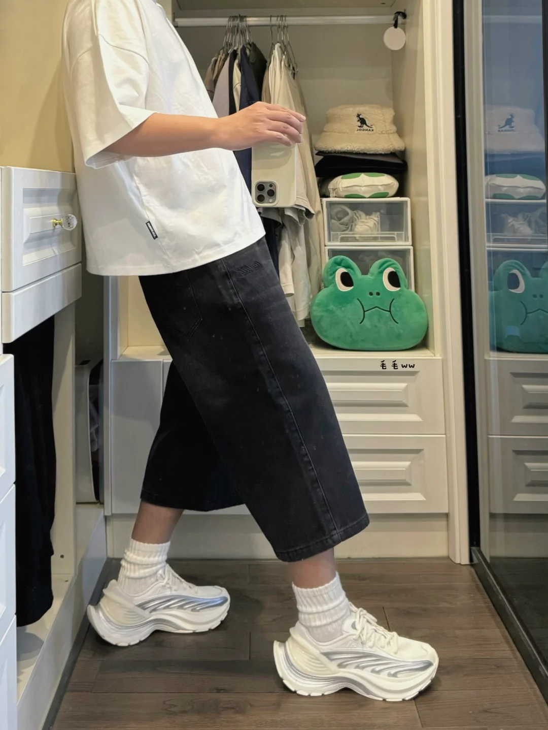 牛仔阔腿裤|洞洞鞋穿搭