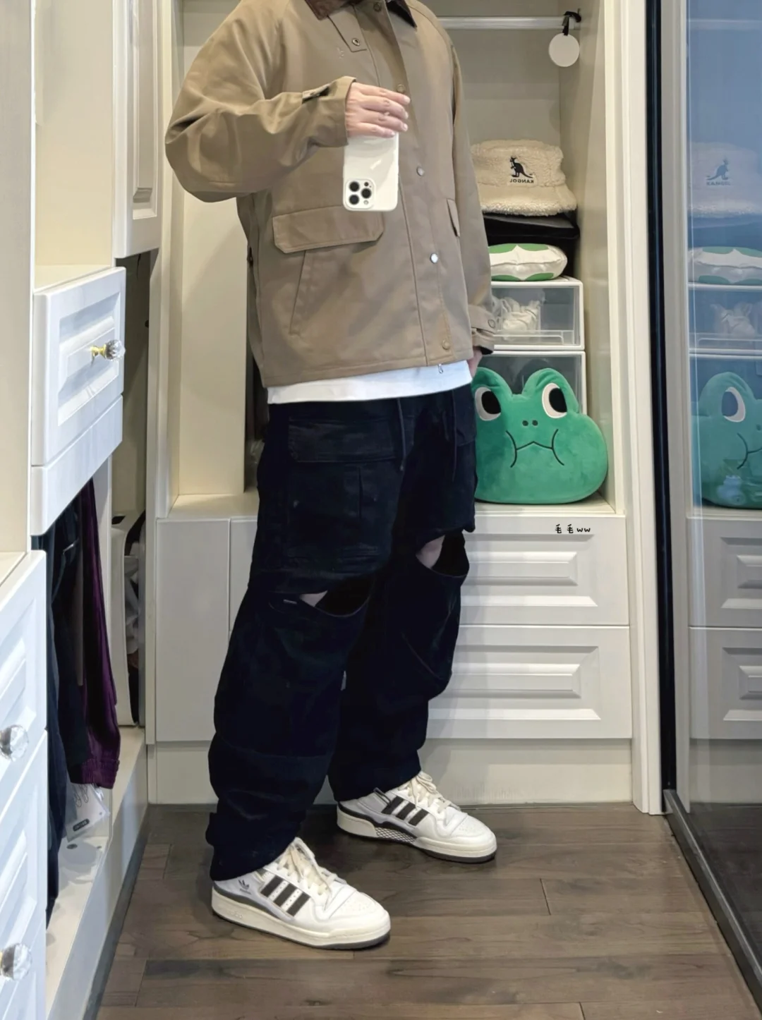 -大地色系跟工装风简直不要太搭;上装口袋外套,下装二合一工装,球鞋的棕色细节与整体呼应 . —————— . 👔Teenie Weenie Men // XL . 👖Expensive Taste // L . 👟Adidas Forum 84 low // 42 . —————— . ✏️本人178cm75kg 球鞋尺码265mm(正常EU42) . 💭以上均为我个人观点,不喜勿喷,欢迎讨论