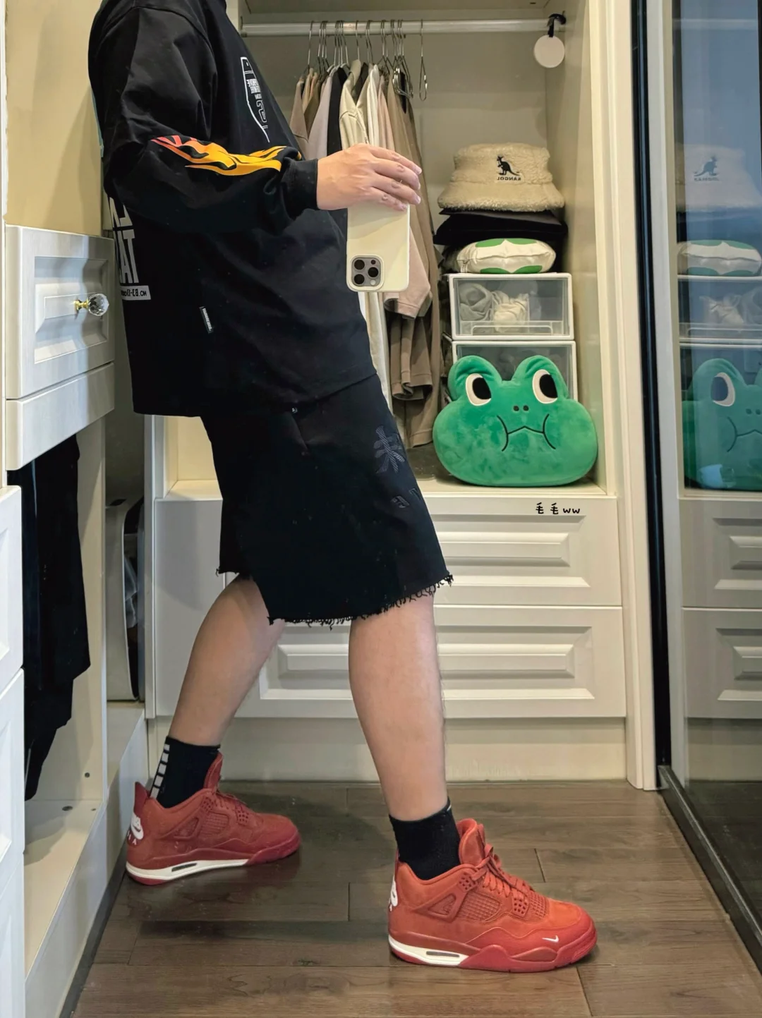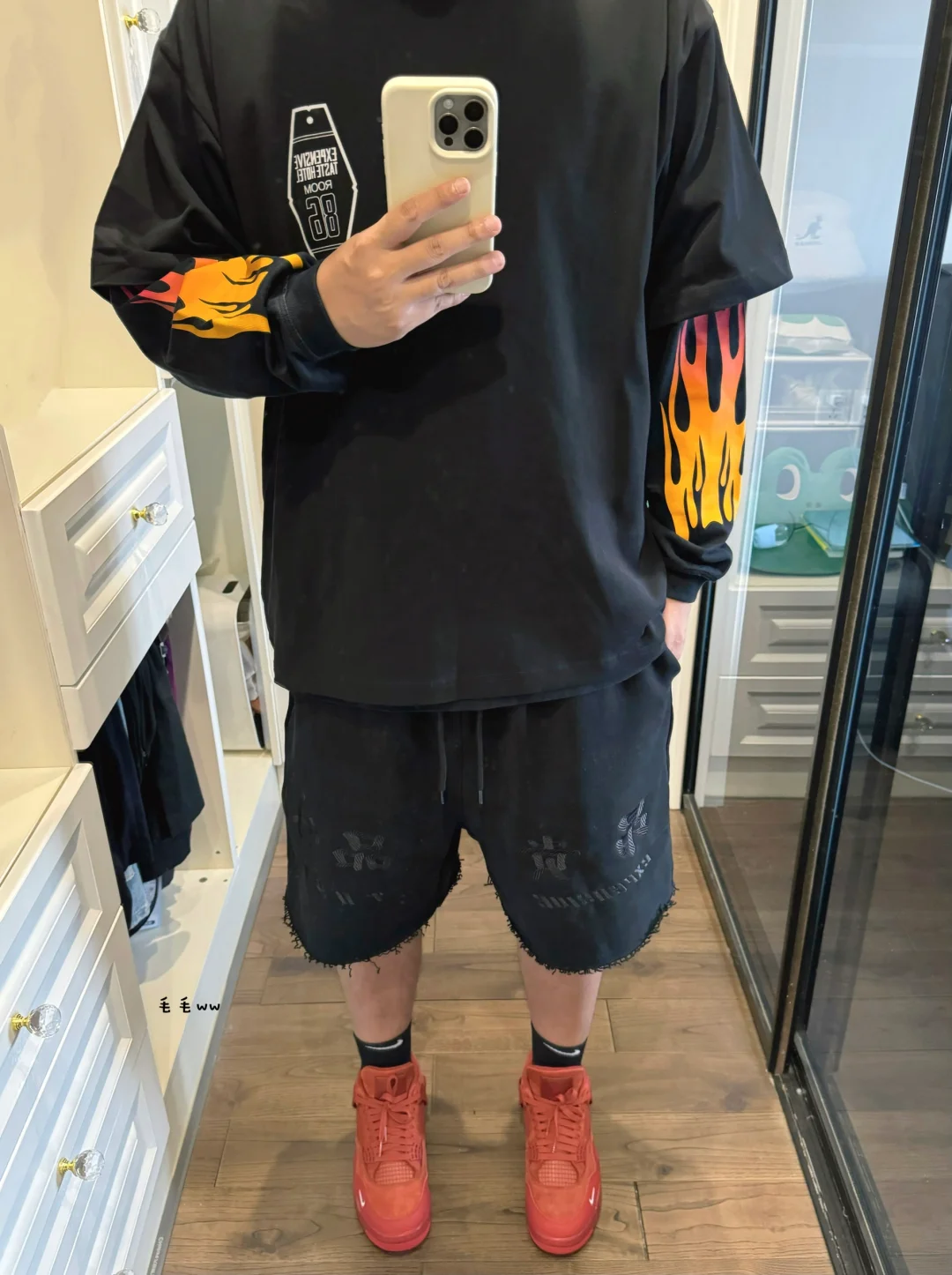 -黑红不会出错的cp色,手臂的火焰印花吸睛 -一场暴雨降温过后,长短Tee层搭又穿起来了 . —————— . 👔Expensive Taste / Anta SV // L . 🩳Expensive Taste // L . 👟Air Jordan 4 / Nigel Sylvester // 42.5 . —————— . ✏️本人178cm75kg 球鞋尺码265mm(正常EU42) . 💭以上均为我个人观点,不喜勿喷,欢迎讨论