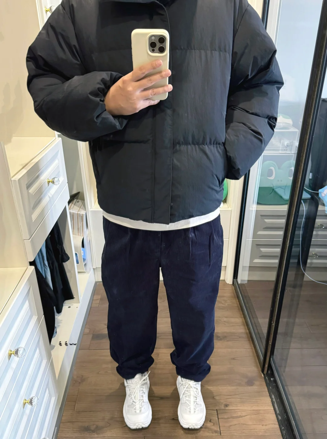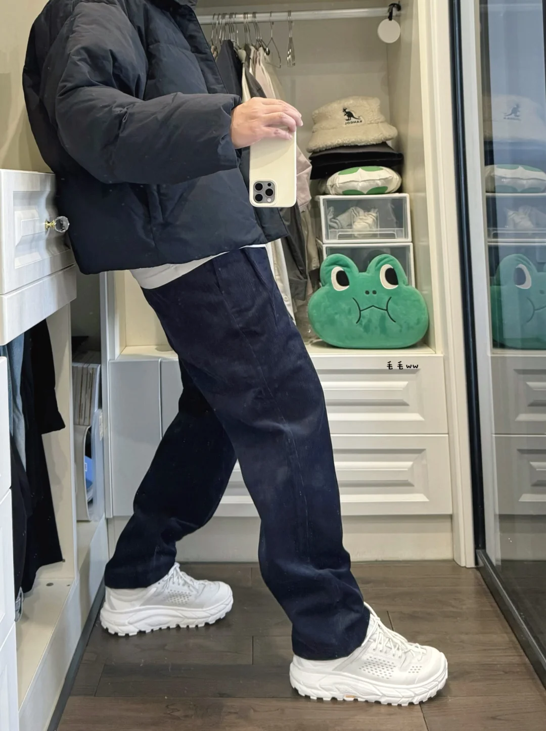 -本期冬季保暖路线,面包服搭配灯芯绒 -简洁的黑白色调,不同材质做出层次感 -干净的内搭&鞋子,全黑look中特别突出 . —————— . 👔Uniqlo U / 462851 // L . 👖Teenie Weenie Men // XL . 👟HOKA One One / tor ultra // 42 . —————— . ✏️本人178cm75kg 球鞋尺码265mm(正常EU42) . 💭以上均为我个人观点,不喜勿喷,欢迎讨论