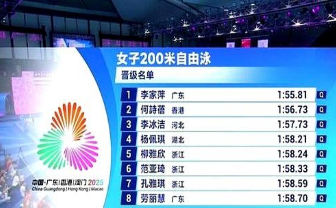 深圳大运体育中心,今夜的泳池,不,应该说是火山。女子200米自由泳半决赛,赛前的空气里弥漫着一种理所当然的剧本味道。所有长枪短炮,所有现场观众的窃窃私语,都围绕着两个名字打转:何诗蓓,李冰洁。一个是新科世锦赛冠军,手握亚洲纪录的香港“大魔王”;另一个是咱们自家女子中长距离的绝对核心,意志力堪比钢铁的河北姑娘。何诗蓓这本该是一场“神仙打架”的预演,一场为明日金牌归属提前定调的王者对话。可竞技体育,最迷人的地方,就是它从来不伺候写好的剧本。它专治各种“理所当然”。枪响,入水,水花翻腾。前100米,一切似乎还在掌控之中。何诗蓓用她那教科书般丝滑的泳姿,不紧不慢地保持着领先。李冰洁则紧紧跟随,发挥着她后程强大的优势。然而,游过150米转身,当所有人都在等待那场预想中的双雄争霸时,泳池里,一股陌生的力量,一股来自边路,却搅动了中央水道的暗流,正在疯狂涌动!触壁,计时器定格。整个游泳馆,安静了大概一秒钟。一秒钟后,不是欢呼,而是那种混杂着惊愕与不解的“嗡嗡”声。大屏幕上的排名,像一记重拳,砸在了所有人的认知上。第一名:李家萍,广东,1分55秒81。