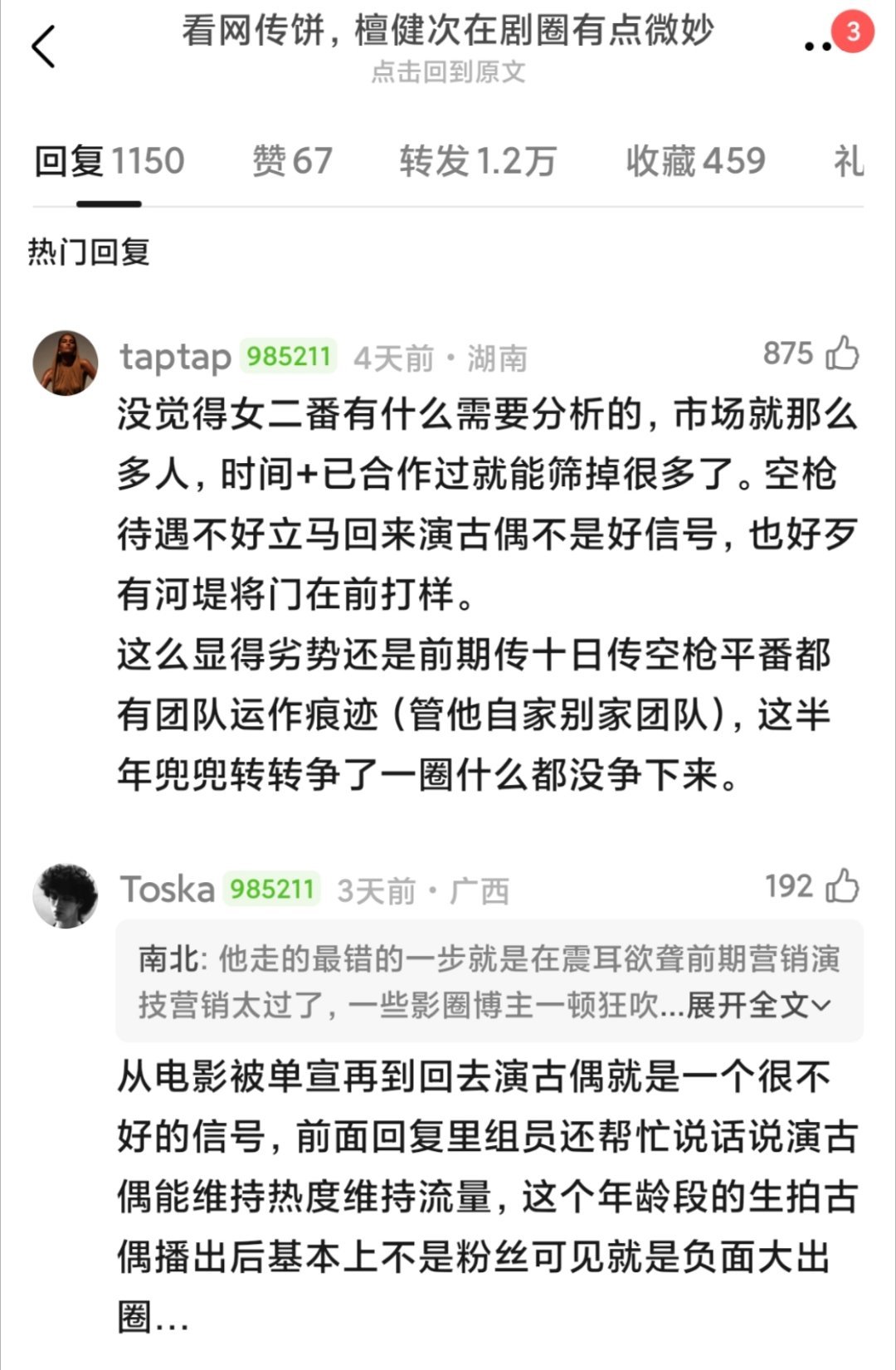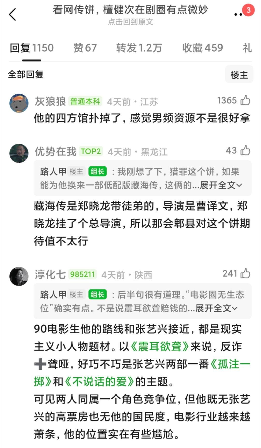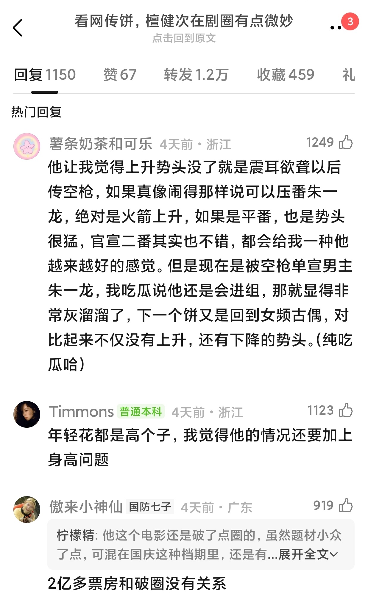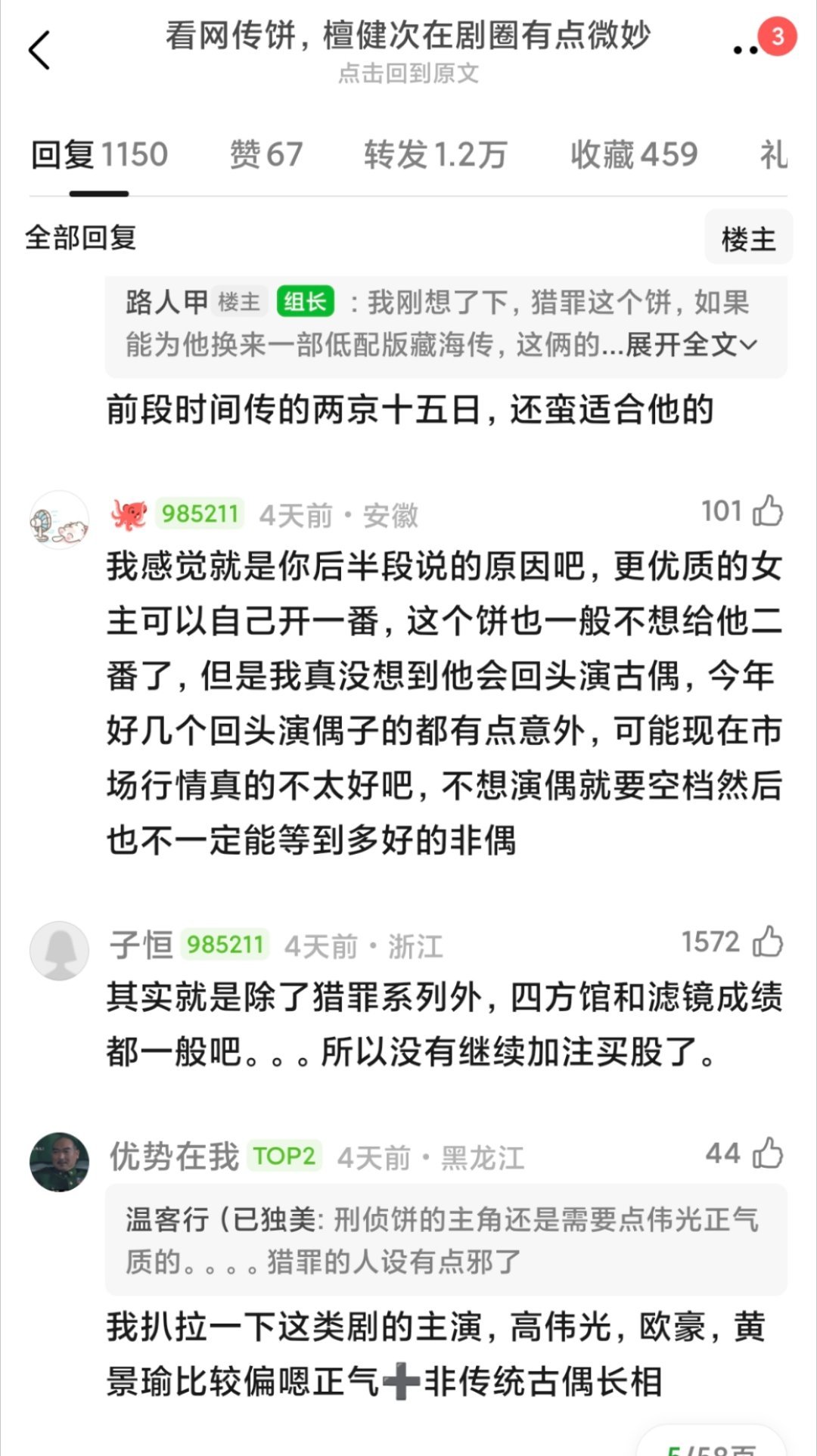 “根据网传🍪,檀健次在剧圈的地位有点儿微妙”这个帖居然盖了上千楼网友说🦔凭借两部《猎罪图鉴》的一番实绩➕相柳大吸粉,檀丝在商务和专辑上也是猛氪,网传檀儿接触过的国安剧《交锋》和男频大🍪《十日终焉》居然一个都没接,在剧圈还是搭95待爆🌸演古偶,在影圈还是二番电影,未免让人有点想不通了