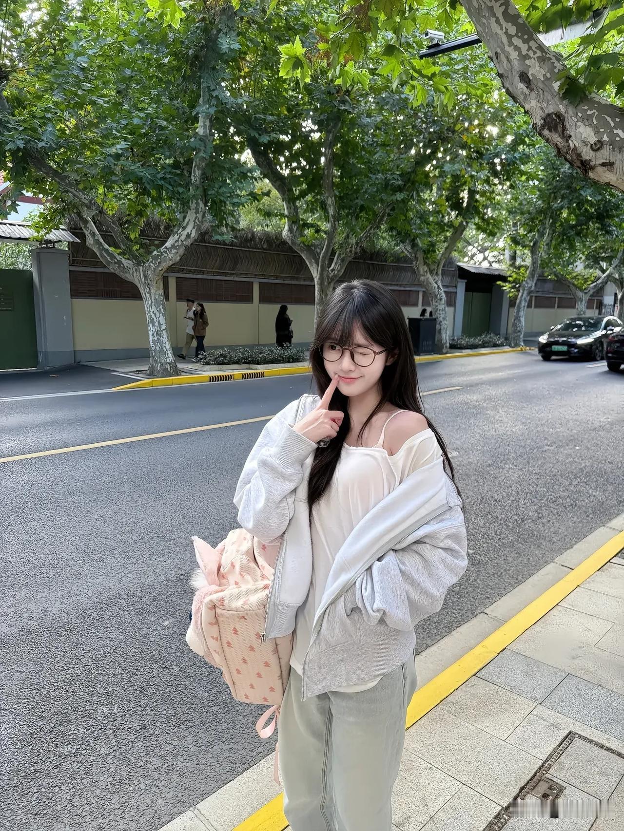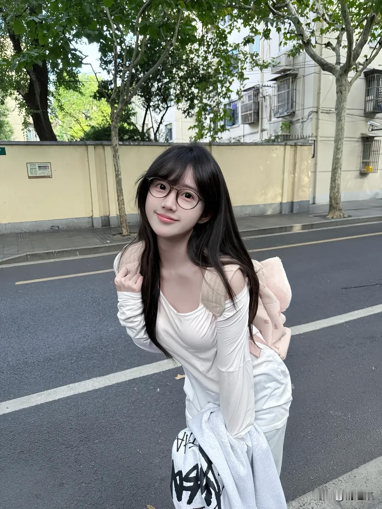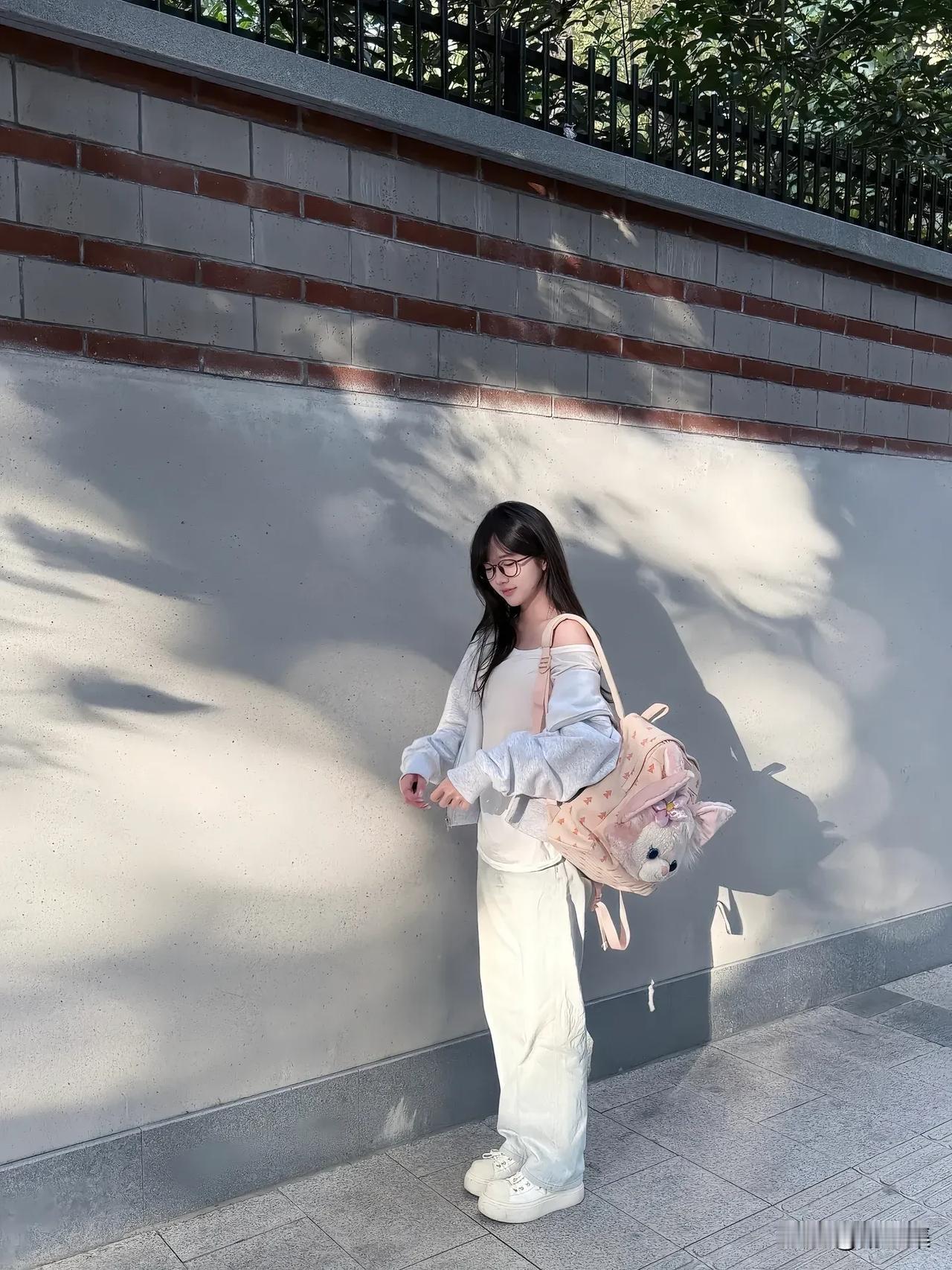 阳光下的青春少女,背着书包,微笑前行。