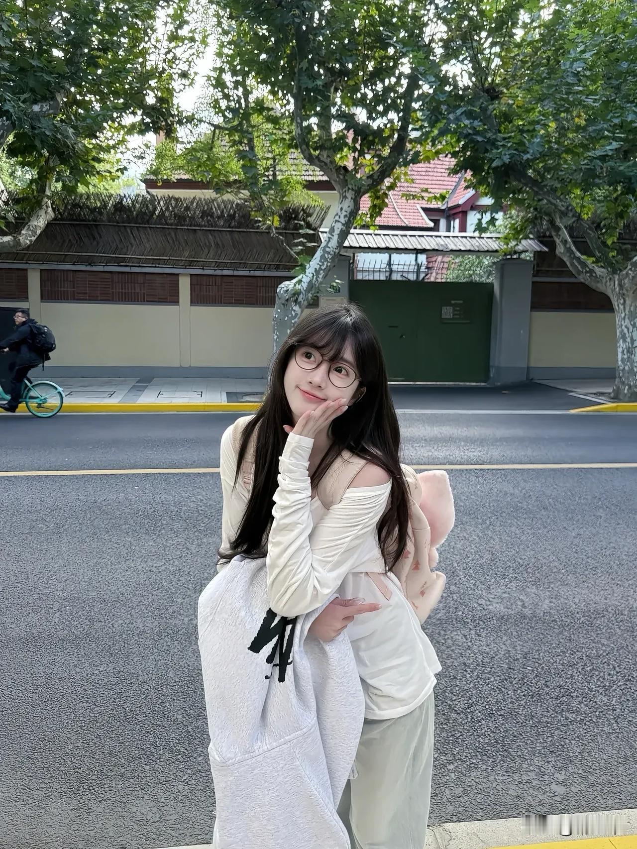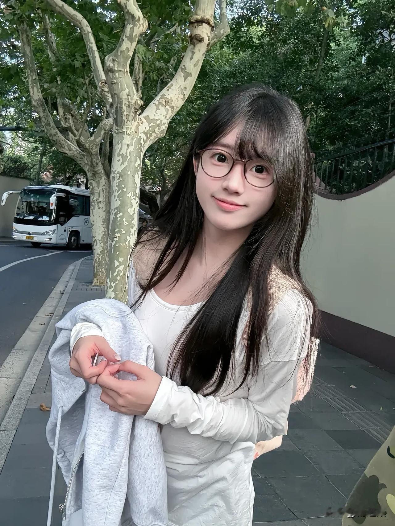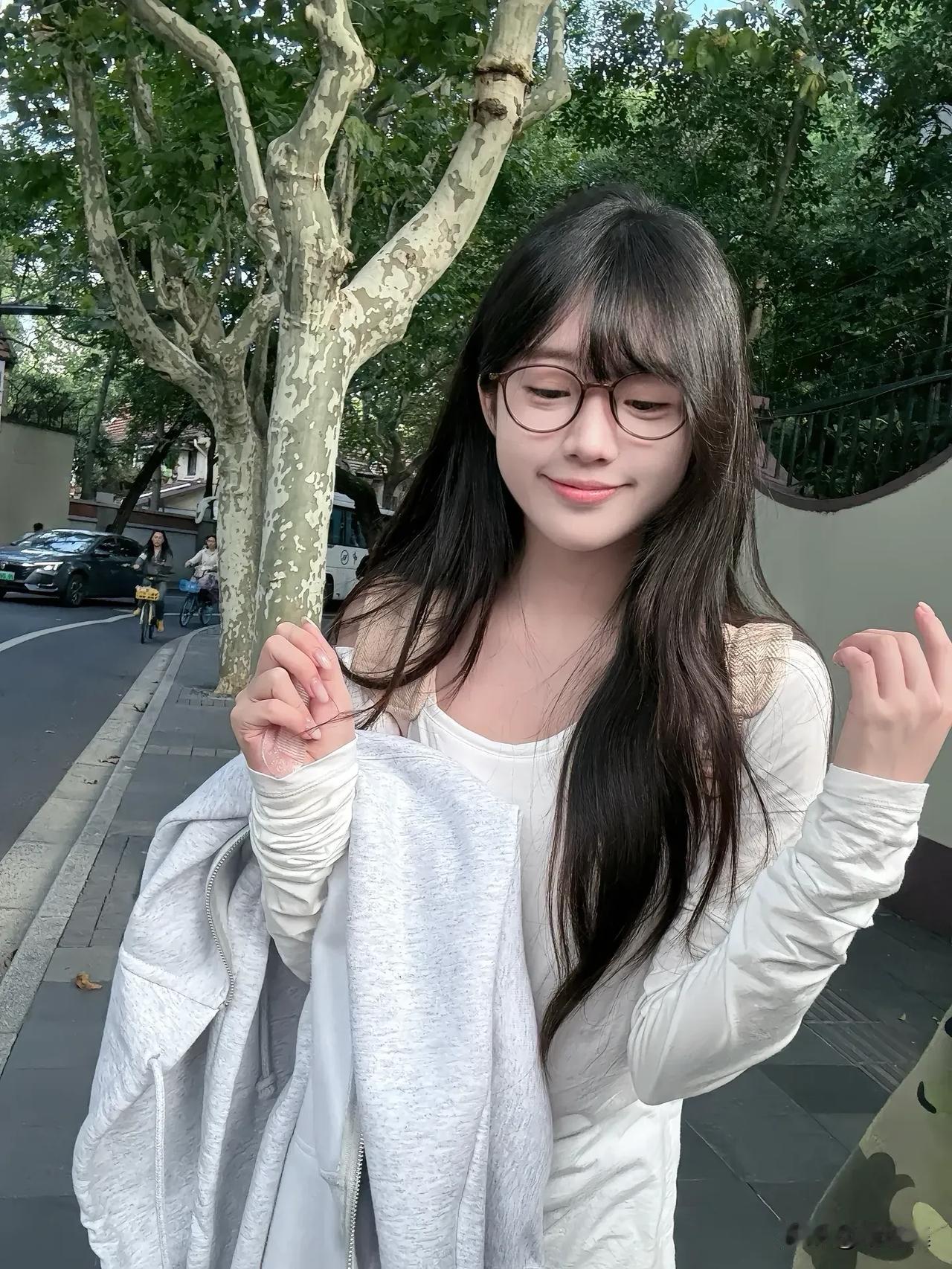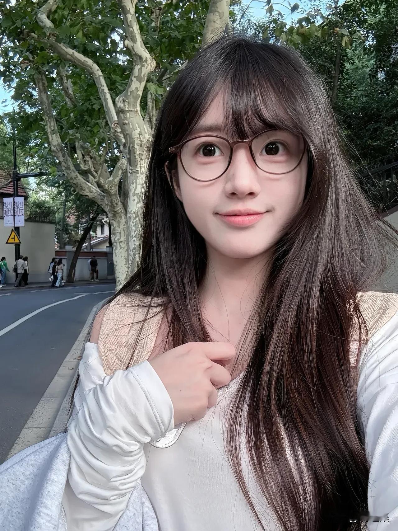 阳光下的少女,绿意盎然的公园,甜美笑容,清新自然。