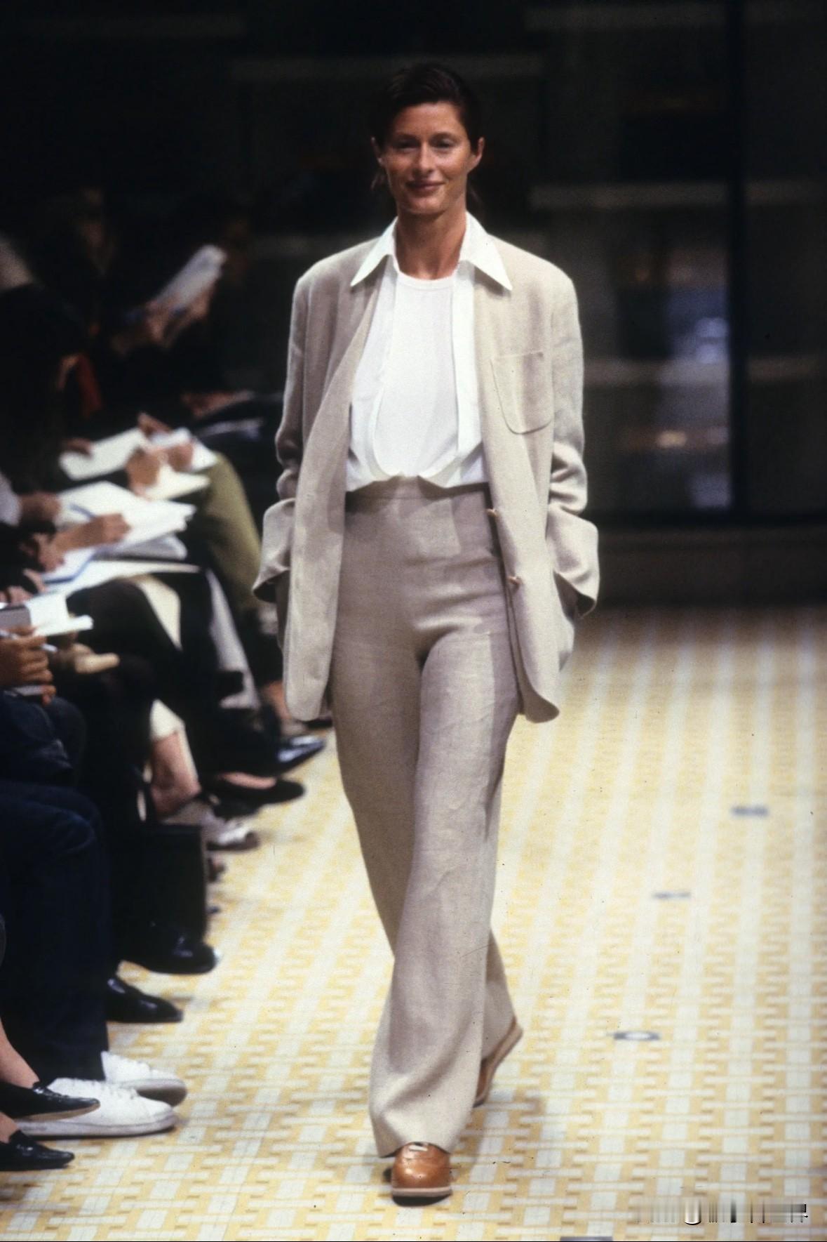 Martin Margiela在1997-2003年执掌爱马仕的设计,放到今天看依旧“封神”。 20多年前的秀场图,今天穿出门依然是“高级感天花板”。 核心是超前20年的极简+对“奢华本质”的重构。 他用中性色(沙色、炭灰)+素净单品,比如长及脚背的垂坠羊绒裤、无扣直线大衣,当时被骂“没设计”,现在却是“静奢/老钱风”的鼻祖。 细节全藏在看不见的地方,奢华不是堆Logo,是“穿上后忘了奢侈本身”。 The Row的极简廓形、Phoebe Philo时期的Celine、Loro Piana的羊绒质感……甚至近年大火的“叠穿+腰带”搭配,都是他20年前在爱马仕秀场玩过的。 有意思,是他当年的设计出来的时候一直被骂太平淡。