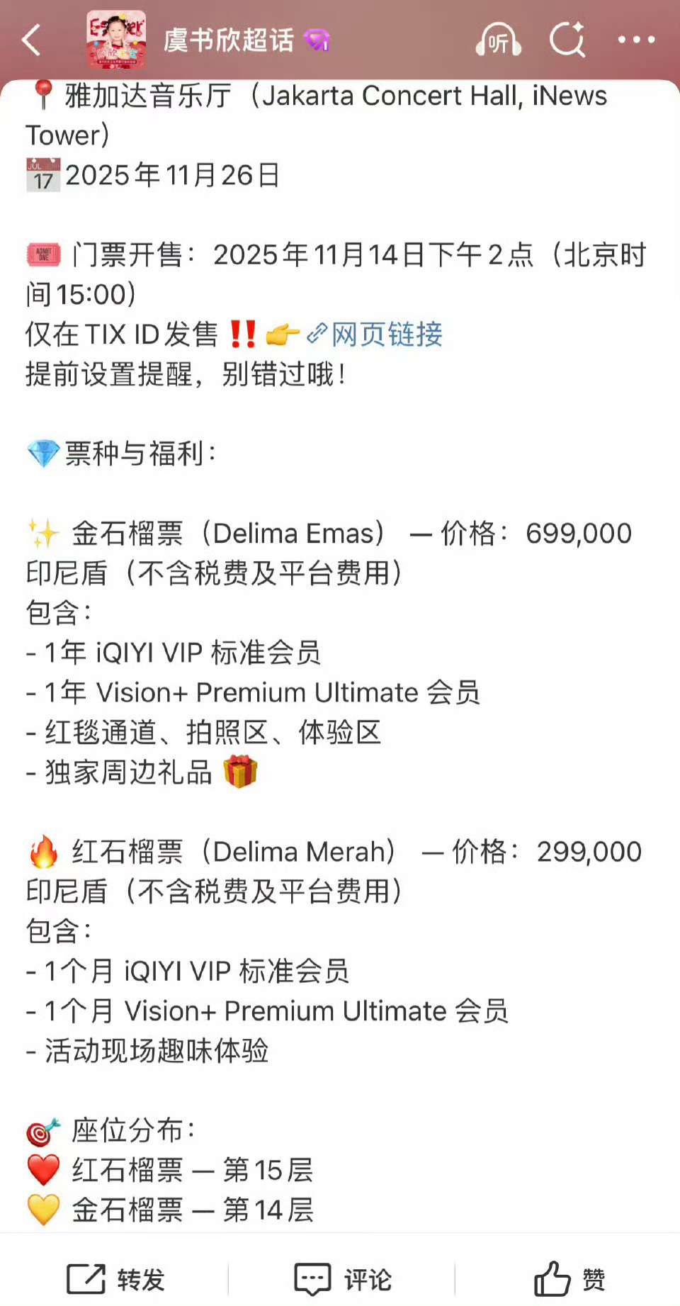 虞书欣印尼粉丝见面会福利太好,不到300就可以合影,还有独家礼物🎁啊