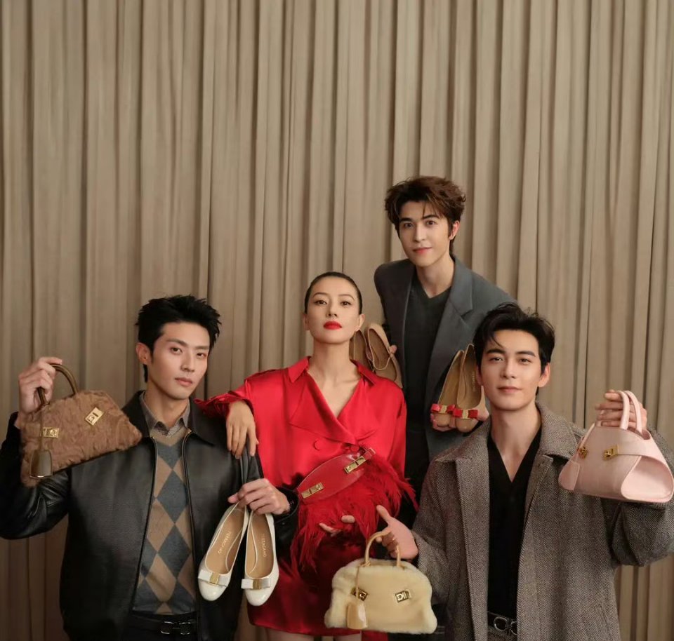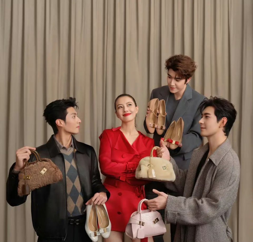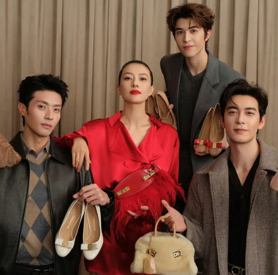 高圆圆被陈星旭、陈靖可、尹浩宇围在中间,身穿红裙气场强大如女王……!!!