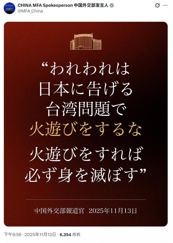 日方若武力介入台海必将遭迎头痛击! 外交部推特官方帐号用日语写道,如日方胆敢武力介入台海局势,中方必将迎头痛击。 这次准备硬刚,你玩暧昧我跟你玩横的,清清楚楚明明白白,别说我不讲理,老子跟你讲讲啥叫真理。 日本是个“畏武而不怀德”,骨子里刻着“都忘恩负义”的一群人。 苏联西伯利亚的土豆,美国扔下的原子弹,让日本80年趴在地上不敢抬头。 所以,中国必须也要有这种手段。 邱小姐驾到,耶路撒不一定冷,但东京一定要热,而且是满大街熟人的那种热。