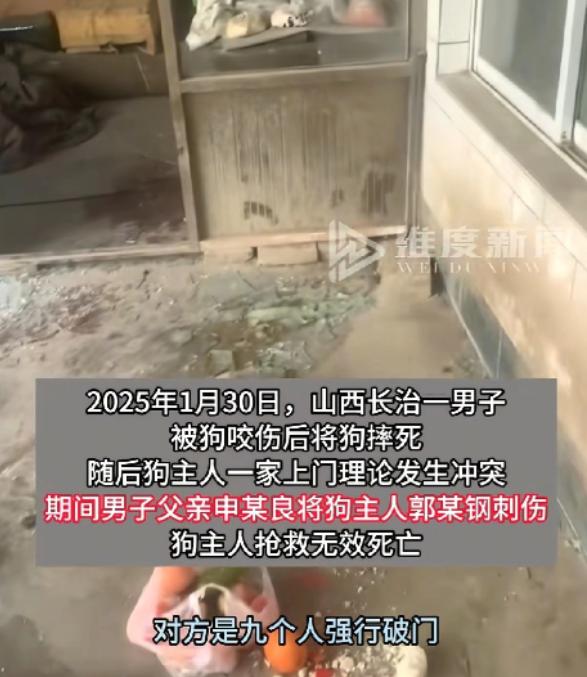 山西长治狗咬人引发的命案,狗主人带着8人破门砸窗而入,申家人正在吃饭。起冲突后,申父被围,母女光报警电话就打了5次,可见当时情况有多么的危急!   今年 11 月中旬,山西长治一场庭审引了不少人关注。   谁能想到,这场官司的源头,竟然是大过年的时候一起宠物狗咬人事件,最后还酿成了命案。   事情得从申家的一个少年说起,那天他出门没成想被邻居家拴在门外的狗咬伤了,孩子当时急了,直接把狗摔死了,按理说,出了这种事,双方坐下来好好谈或者找警方协调,总能解决。 申家也确实想这么办,又报警又想协商,可郭家就是不配合去派出所,矛盾就这么搁着,慢慢升级了。   到了晚上,郭家好几个人跑到申家门前,说是要 “理论”,可据说是又砸门又砸窗,还推搡着进了申家院子,那会儿申家老人、妻子还有其他亲属正在屋里吃饭,好好的一顿饭,瞬间就乱了套。   申家父亲被好几个人围着推搡,有证人说他都被逼到窗台边的墙角了,根本没地方躲,申家母女吓得不行,前后至少打了五次报警电话,从这次数就能看出来,当时情况多紧急,一家人多恐慌。 混乱中,申家父亲在被围着的情况下,拿起窗台旁边的一把菜刀反抗,可谁也没料到,这一反抗,竟然造成郭家的郭某重伤,最后没救过来。   现在检方以故意伤害罪起诉了申家父亲,说他在混乱中拿刀刺伤了好几个人,导致一死三伤,但申家父亲和家属不认可,说这是正当防卫,辩护律师也会在法庭上主张防卫成立。   目前案子还在审理,法院没出最终判决。   这事一出来,不少人都在讨论背后的问题,有人说,现在宠物管理还有邻里矛盾调解,确实有不少漏洞,要是当时狗咬人后,有靠谱的社区或者公安能快速协调,也不至于闹到这步田地。   还有人觉得,处理纠纷的方式太重要了,郭家一群人暴力破门、围攻,把人逼到绝境,很容易引发更严重的后果。   不管怎样现在更受关注的是 “正当防卫” 的界限,到底防卫到什么程度算过了头,过了就得担责任,可要是遇到别人非法闯进家还群攻,自己难道不能自保吗?   说到底,这件事情就是个悲剧,本来只是宠物咬人的小事,没处理好,就变成了人命官司,不管最后判决怎么样,人没了、人伤了,这都是没法挽回的。   最后希望我们可以把社区宠物管理完善好,邻里纠纷能有更快的调解办法,大家也多学点怎么依法维权,别再用暴力解决问题了。   对此,你还有什么看法呢? (信息来源 :维度新闻 )