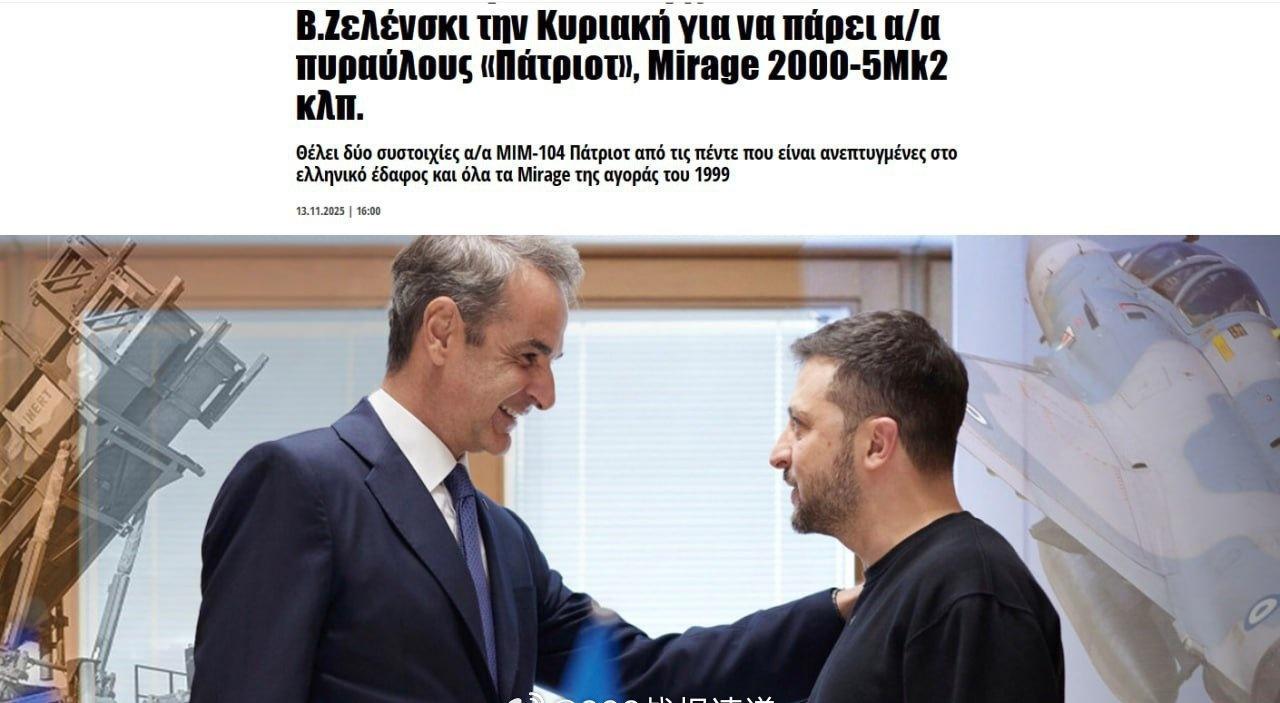 🇺🇦🇬🇷希腊媒体Pronews报道,乌克兰总统泽连斯基紧急前往希腊请求其提供“爱国者”防空系统和幻影2000战斗机,原因是乌克兰“已耗尽或接近耗尽”防空导弹库存,尤其是“爱国者”防空导弹。 希腊是否会提供两套“爱国者”防空系统尚无保证,因为该国的“爱国者”防空系统保护着雅典和塞萨洛尼基,以及色雷斯海的空域,防范潜在的土耳其攻击。