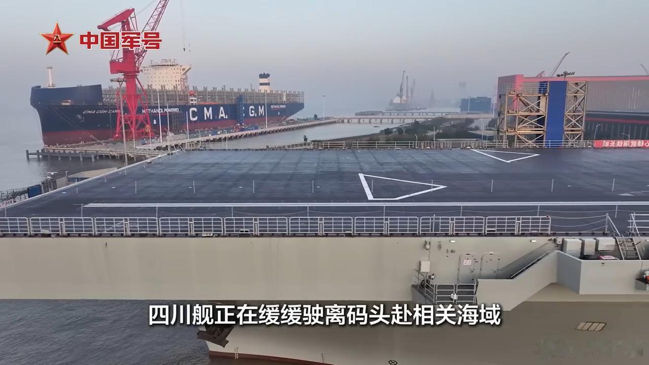 中国海军首艘076型两栖攻击舰“四川”舰解缆试航 11月14日即今天上午9时许,我国076型两栖攻击舰首舰“四川”舰从上海沪东中华造船厂码头解缆启航,赴相关海域开展首次航行试验任务。“四川”舰舷号51,是海军新一代两栖攻击舰,满载排水量4万余吨,设置双舰岛式上层建筑和全纵通飞行甲板,创新应用电磁弹射和阻拦技术,可搭载固定翼飞机、直升机、两栖装备等。自2024年12月下水以来,四川舰建造工作按计划稳步推进,顺利完成系泊试验和装设备调试,具备出海试验的技术条件。