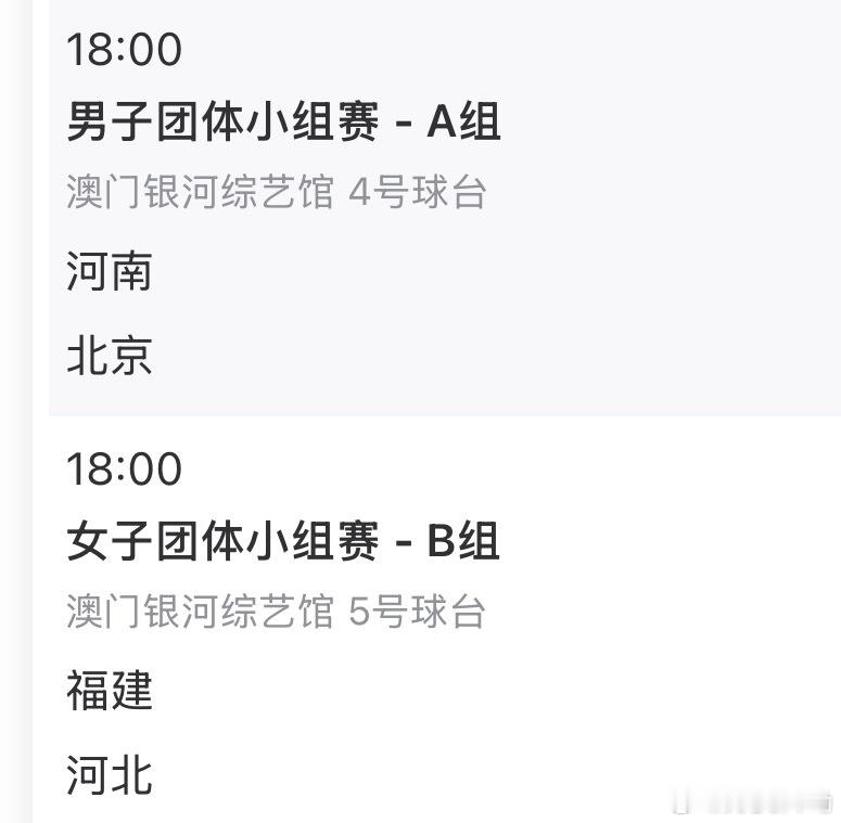 第十五届全国运动会丨11月14日赛程男团 18:00 河南VS北京女团18:00福建VS河北孙颖莎王楚钦团体赛加油,健康完赛