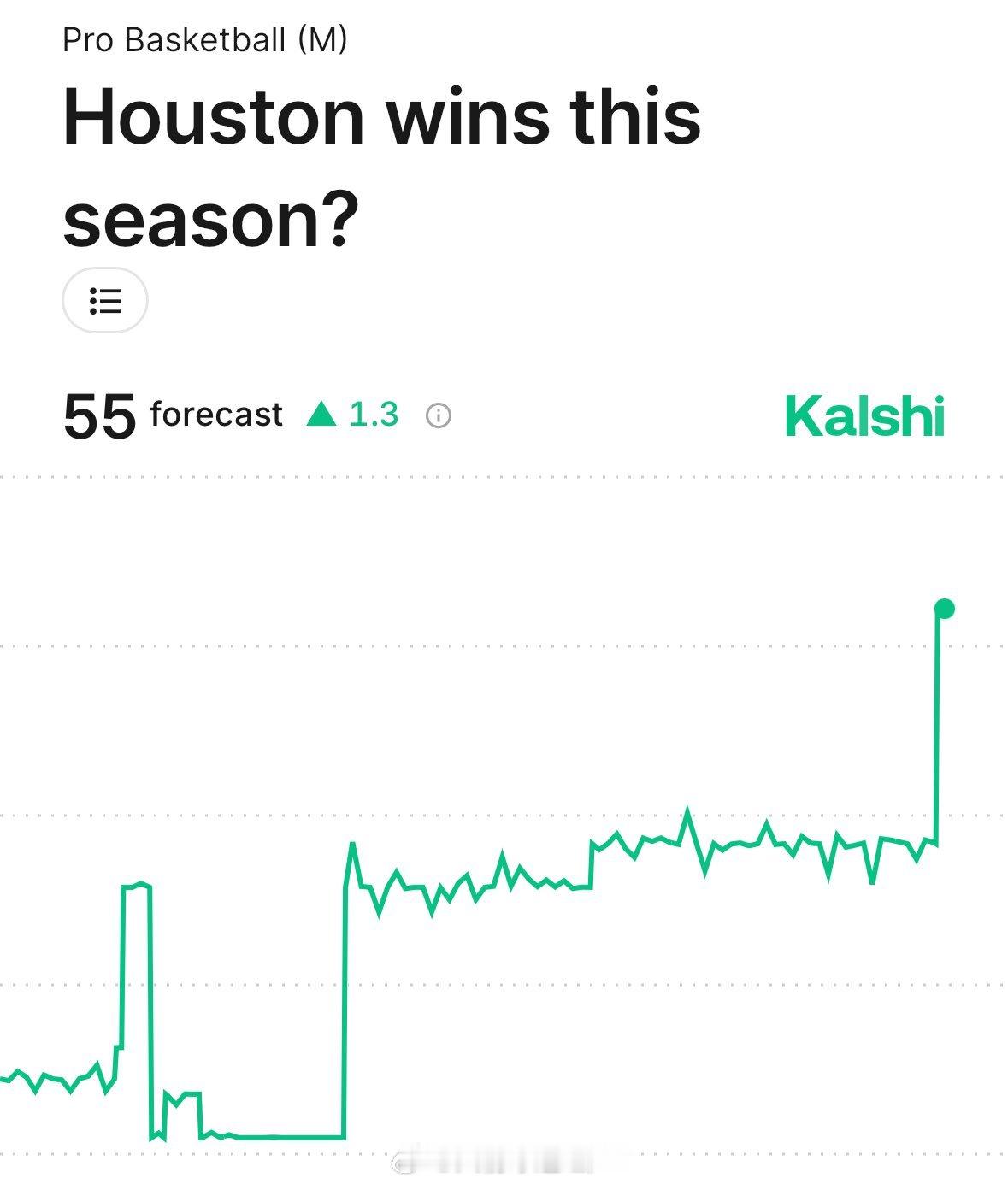 根据Kalshi的预测,休斯顿火箭队今年预计将赢得55场比赛。这将是他们近十年来最好的一年。