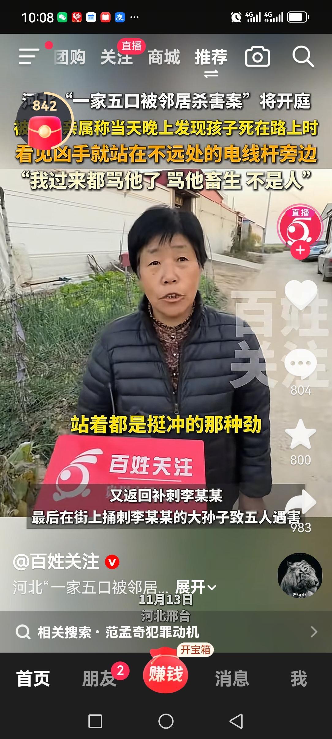 这个老太太的胆子真大,竟然敢当面辱骂,刚刚杀害完李先生一家五口的凶手。 今天,这个案件就要开庭了。 记者采访了受害人的舅妈,也就是这个老太太。她是本村的村民,了解整个事情起因。 她说,凶手今年58岁,常年在外地打工,村里谁家有红白喜事他从不参与,只有过年的时候回家。 李先生家的地和他家的地中间有条小路,那条小路大概有一米五宽。常年被凶手家霸占种了庄稼着,这次李先生家盖房子引了他强烈反对,觉得李先生霸占了他家的地。多次从外地回来找茬,村里也多次出面调解,才平息了纷争。 没有想到凶手却怀恨在心,悄悄的买了凶器,一直在寻找时机对李先生一家下手。 最终李先生一家五口惨死在了他的手里。这个毋庸置疑凶手绝对是死刑。 也提醒我们碰到这种性格孤僻,不善言辞的人,千万不要和他有过节。他要狠起来,后悔就完了。