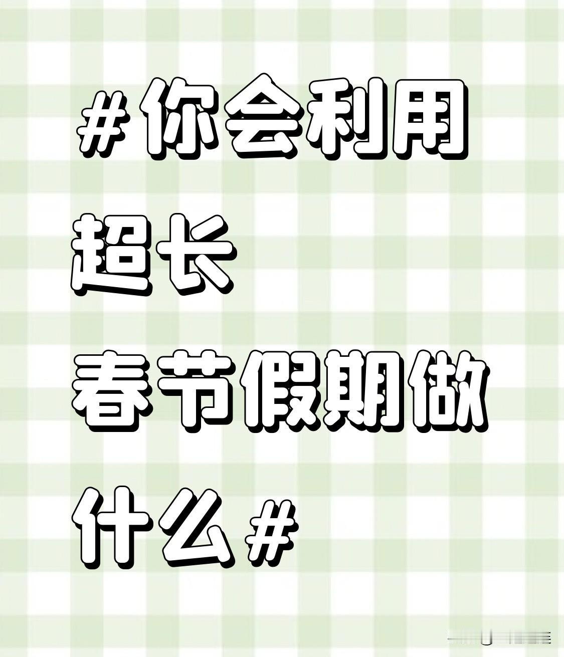你会利用超长春节假期做什么 超长春节假期,大家安排各有不同。我打算把团圆放首位,平时在外工作,春节就好好陪爸妈。跟妈妈贴春联、包饺子,听爸爸唠家常,一家人围坐吃年夜饭、看春晚,想想就温馨。 初一到初三走亲访友,初四去姥姥家,吃她留的腊鱼腊肉、炸酥肉,陪她在村里遛弯。 初五初六带爸妈周边游,找个山清水秀的地方,爬爬山、看看景、拍拍照。 最后两天宅家“充电”,睡到自然醒,吃家常菜,刷刷剧、看看书,卸下上班的疲惫,以好状态回归工作。当然,也有人像张女士一样,利用假期上门“喂猫遛狗”,10多天收入近万元呢。
