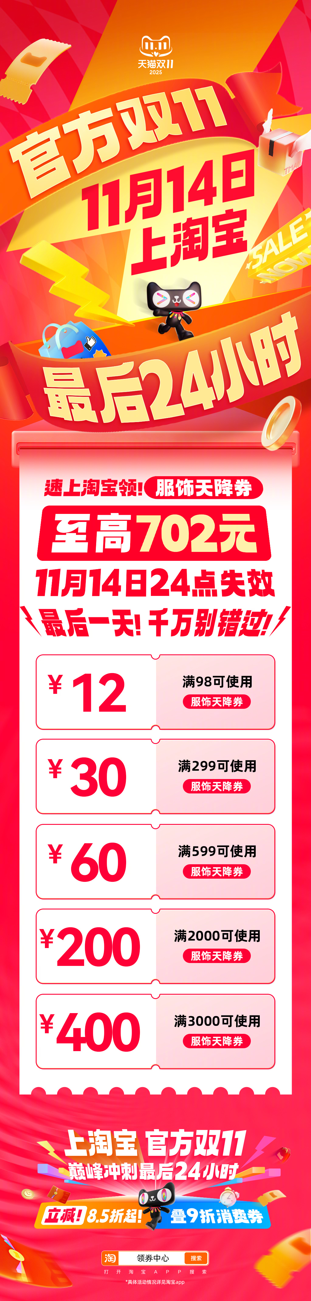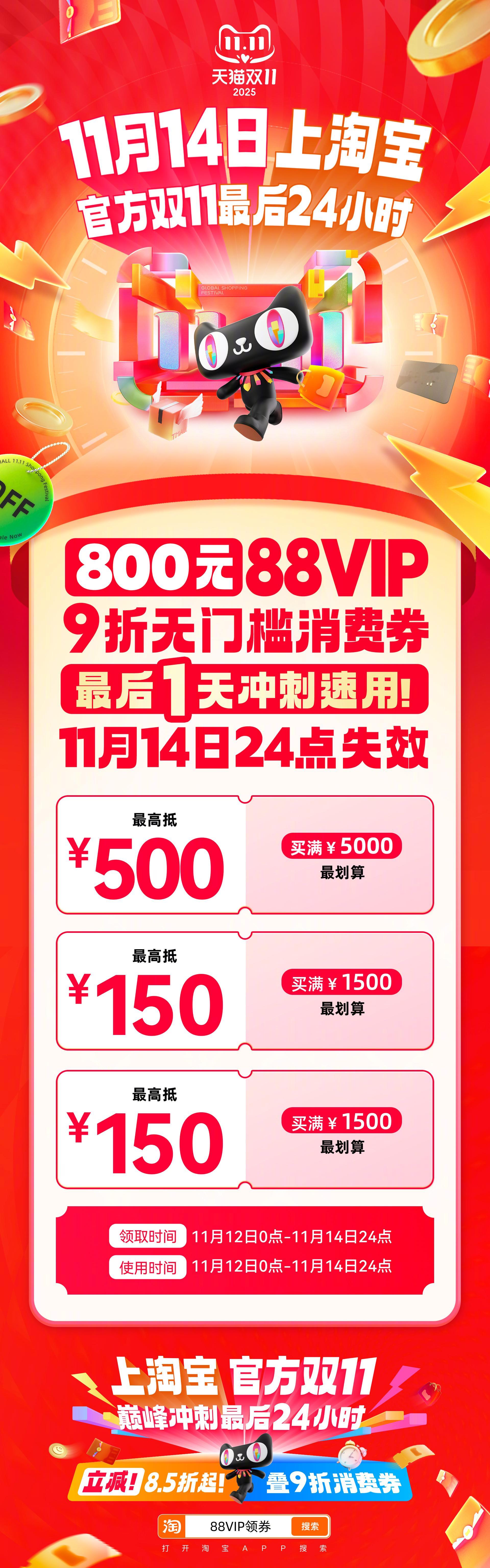 冬天的第一件羽绒服你入手了吗?紧急放送!天猫双11将于11月14日晚结束,今晚是绝版用券夜!800元9折券别闲置,结合当下寒潮来袭,赶紧囤保暖装备!天猫羽绒服直降500元起,滑雪板、护具品类券加持优惠超猛,官方8.5折+品类券+800元9折券三层叠加,温暖不打折!行动起来,淘宝搜【领券中心】或88VIP搜【88VIP领券】折上折,节日尾声薅羊毛正当时,过期不候!