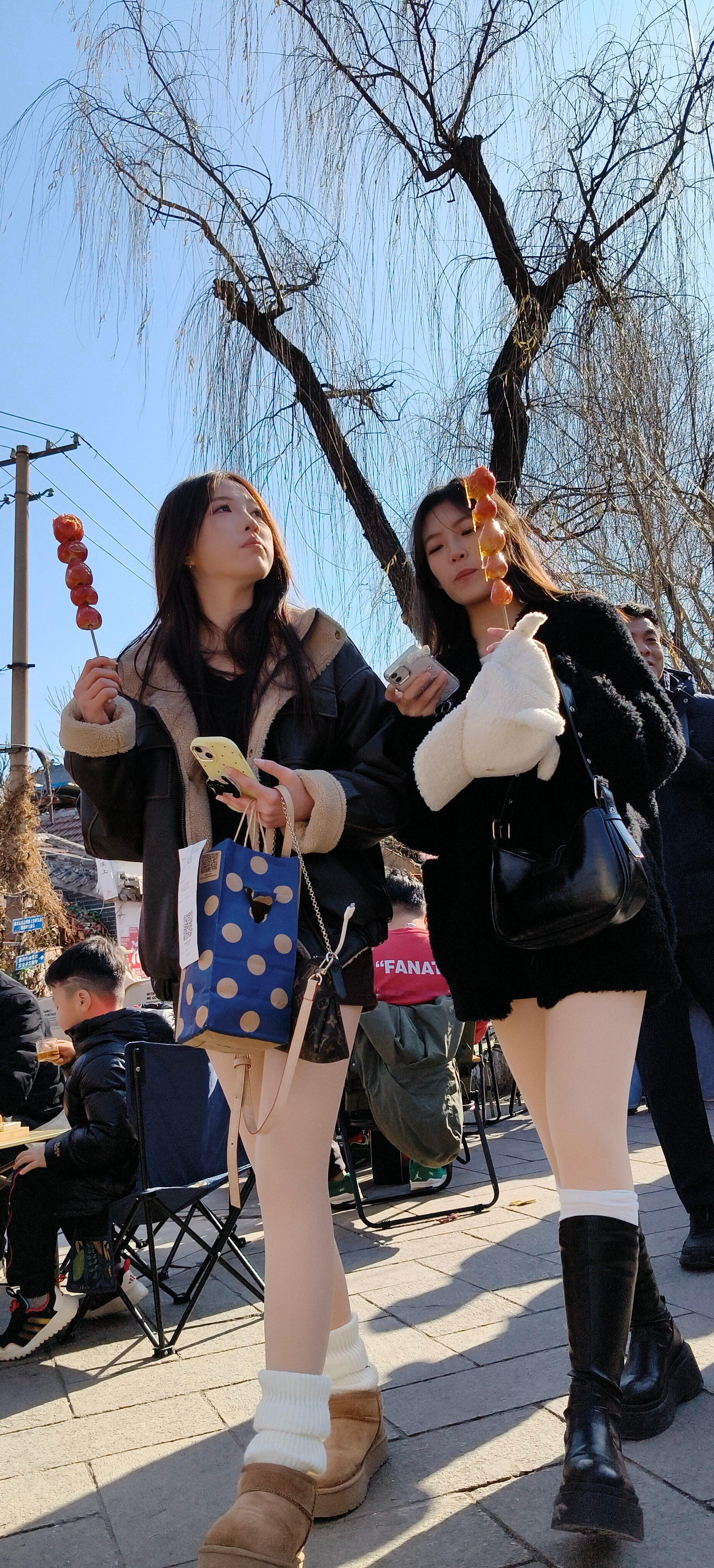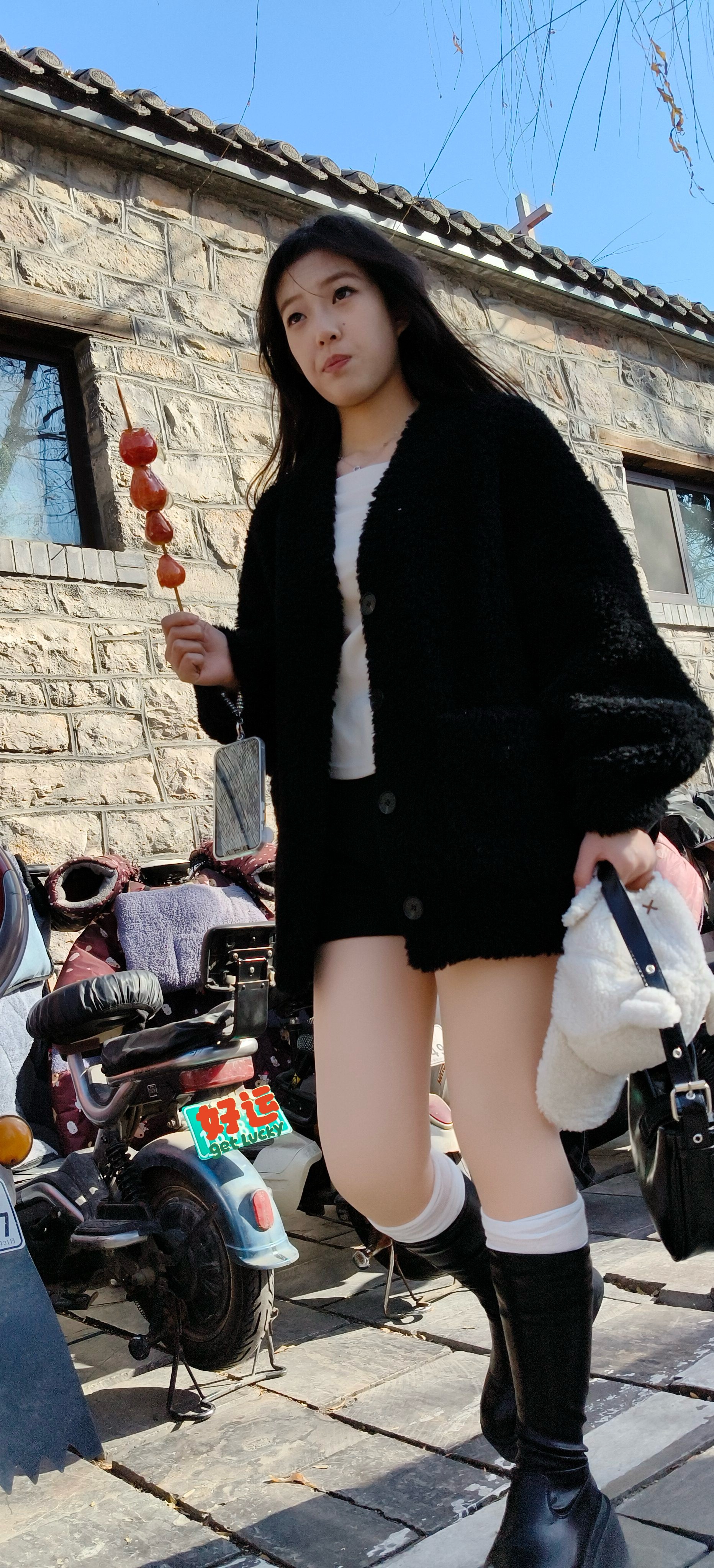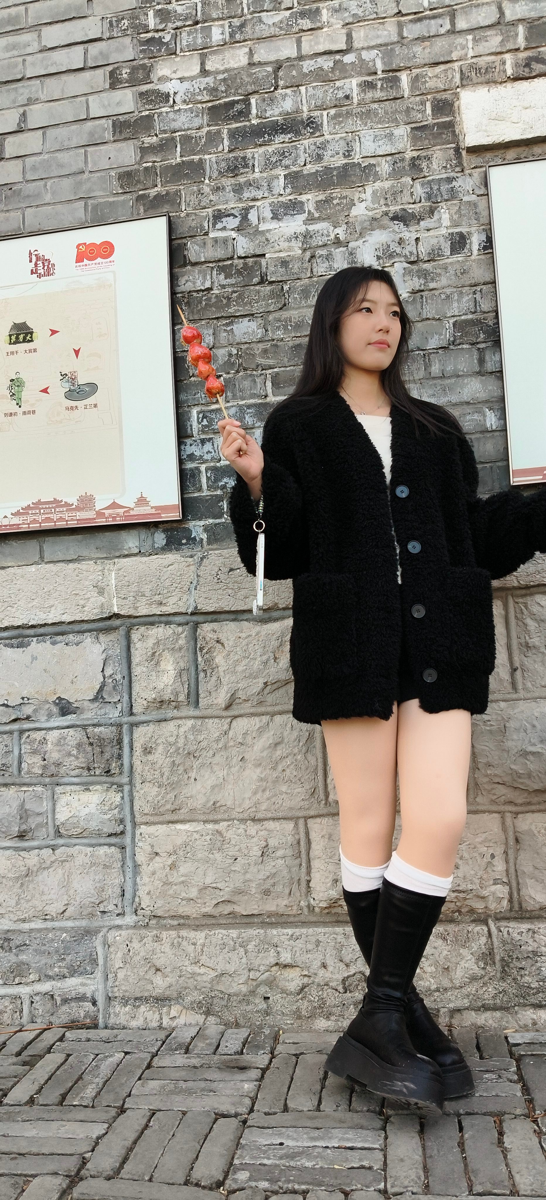 这一身黑糯糯羊羔毛+厚底靴的搭配,一看就是实体店试出来的“刚刚好”——网上哪能精准拿捏这种甜酷松弛的版型适配度~