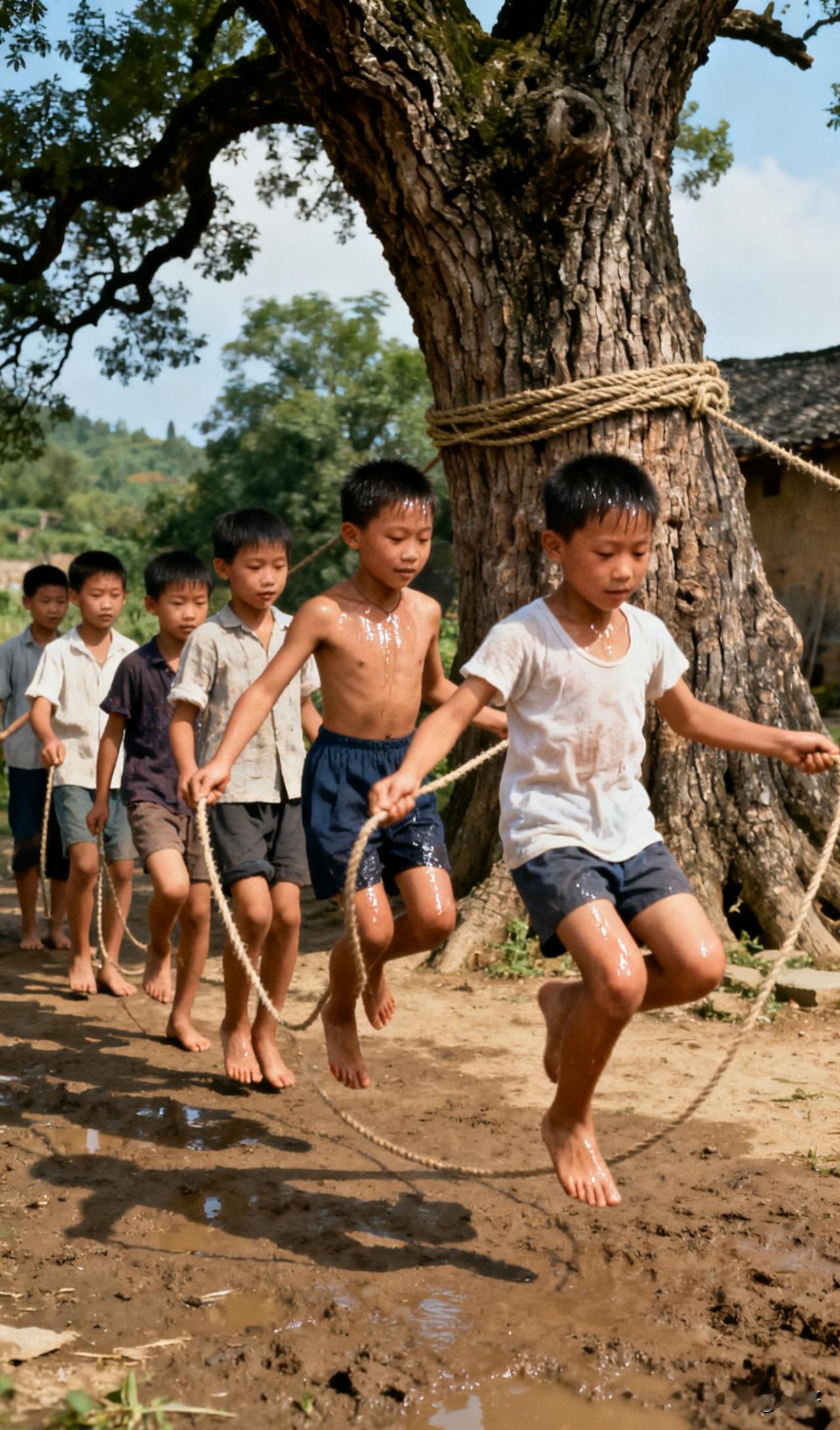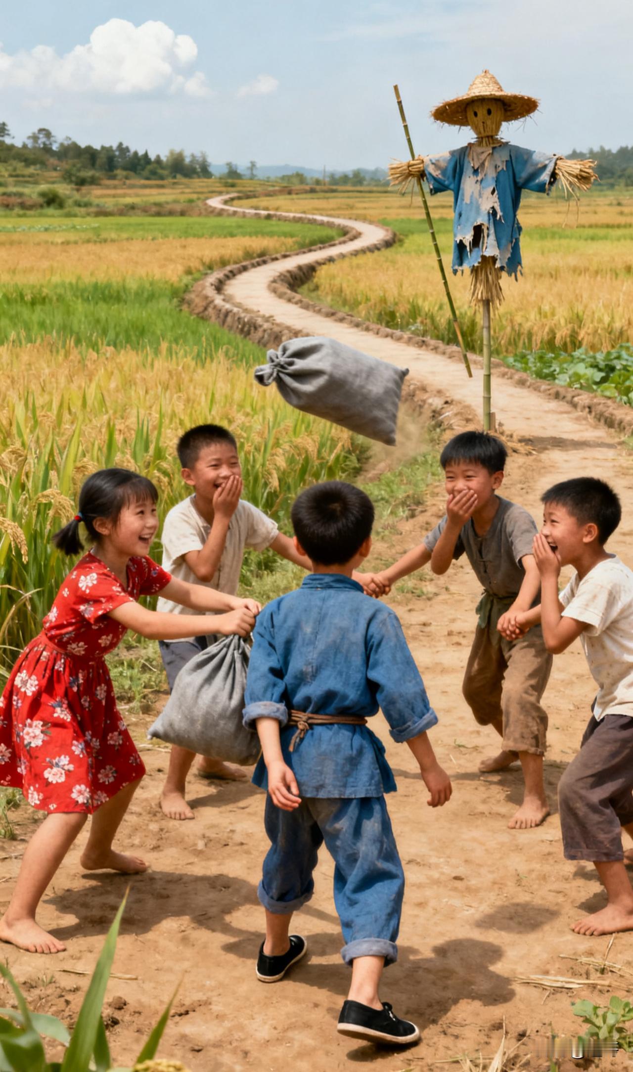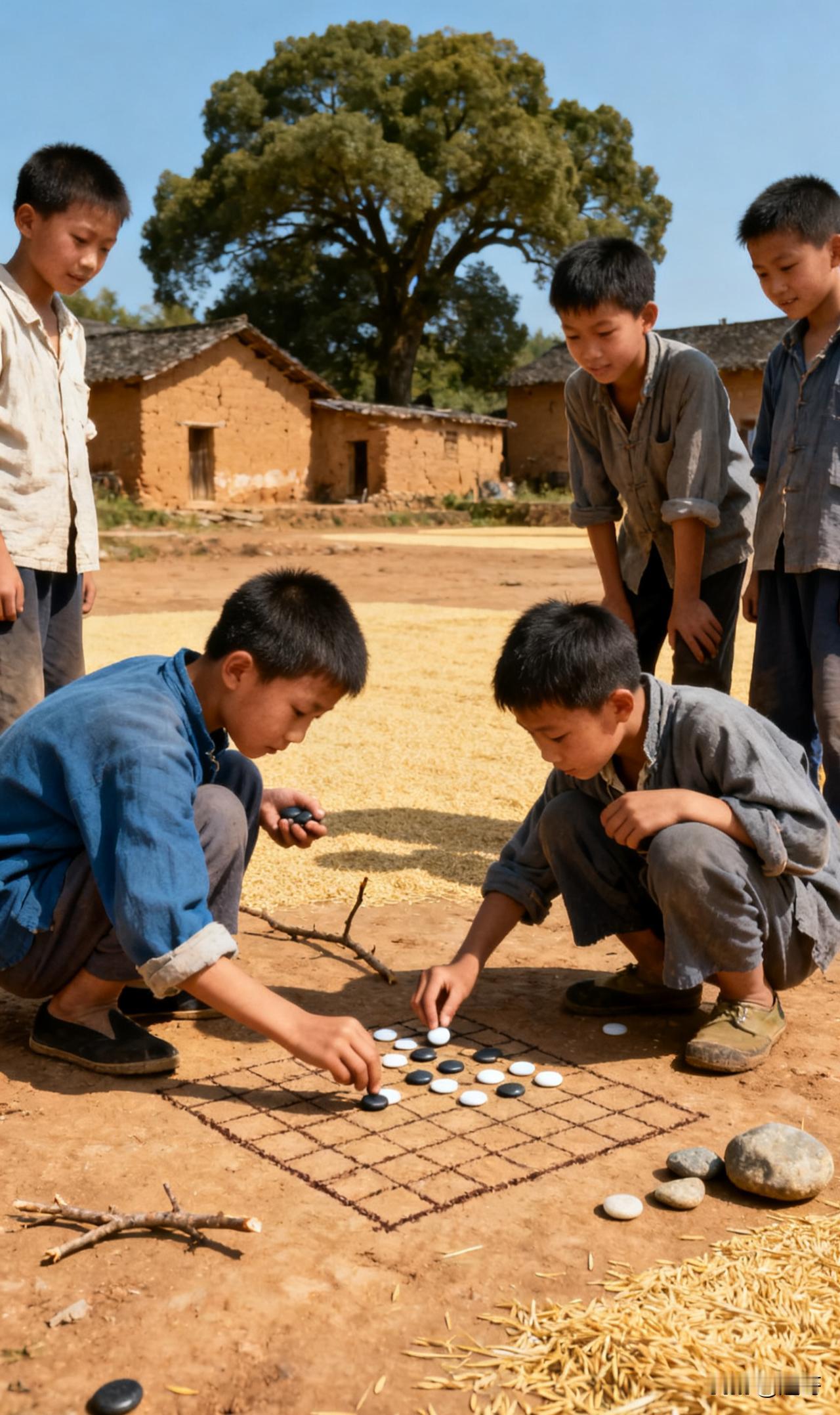 80年代湘中农村童年:没有县城的日子,快乐全是土味的甜! 生于80年代的湘中农村,我直到十几岁都没踏过县城的门槛。那时没有手机、电视也只是稀罕物,可童年的快乐,却被泥土、树枝和小伙伴们的笑声填得满满当当,如今想起,每一段回忆都带着纯粹的甜。 最常玩的便是五子棋,不用棋盘棋子,找块平整的晒谷场,捡起树枝在地上画几道横线竖线,捡两颗石子、拔几根草茎当棋子,两人蹲在地上就能厮杀半天。输了的人要被弹脑门,疼得咧嘴却笑得开怀,围观的小伙伴还会凑过来出谋划策,吵闹声能传到田埂那头。 跳绳是不分男女的集体游戏,找根麻绳系在两棵老槐树上,大家排着队轮流跳,单跳、双跳、一带一,谁断了就换下去摇绳。绳子甩得“呼呼”响,我们光着脚丫在泥地上蹦跳,汗水浸湿了粗布衣裳,脸上却挂着抹不掉的笑,连路过的大人都会停下脚步多看两眼。 最热闹的要数围圈丢东西打屁股,一群孩子手拉手围成圈,有人站在中间,其他人偷偷把布包或小石子丢向中间人的屁股,丢中了就换对方来当“靶心”。大家屏住呼吸、蹑手蹑脚,被打中的人佯装生气地追赶,跑着跑着就变成了全员疯跑,田野里全是清脆的笑声。 下军棋是男孩子们的最爱,棋盘是用硬纸壳画的,棋子要么是捡来的瓶盖,要么是用木头刻的,上面歪歪扭扭写着“司令”“军长”。蹲在墙角边,一人守一方阵地,时而眉头紧锁思考战术,时而为吃掉对方的“军旗”欢呼雀跃,连旁边看热闹的小姑娘都忍不住凑过来支招。 女孩子们则喜欢玩泥人和“做饭”。挖来田里的黄泥巴,捏成小人、小动物,还会用野花装饰;“做饭”更是有趣,找来破瓦片当锅,挖些灰土当米,扯几把野菜当菜,再找两根细长的树枝做筷子,几个人围在“灶台”边,你添“柴”我盛“饭”,模仿着大人的模样,吃得有滋有味。 没有精致的玩具,没有繁华的场景,可那些土味十足的娱乐,却构成了我最珍贵的童年。如今身在城市,见惯了车水马龙,却总想起当年在泥地里奔跑的时光,想起和小伙伴们简单纯粹的快乐。原来最动人的回忆,从来都不是物质的堆砌,而是那些带着泥土气息的、无忧无虑的日子。 友友,你的童年是咋过的?乡下过的?还是县城过的?有哪竺开心事? 迷哥创作分享[比心] 童年老家的样子 80年代山村 70年代乡村 80年代秋收 农村男孩童年 70后农村往事 六十年代乡村