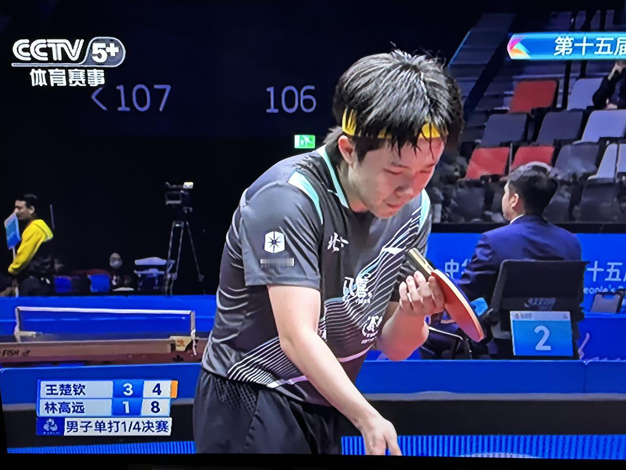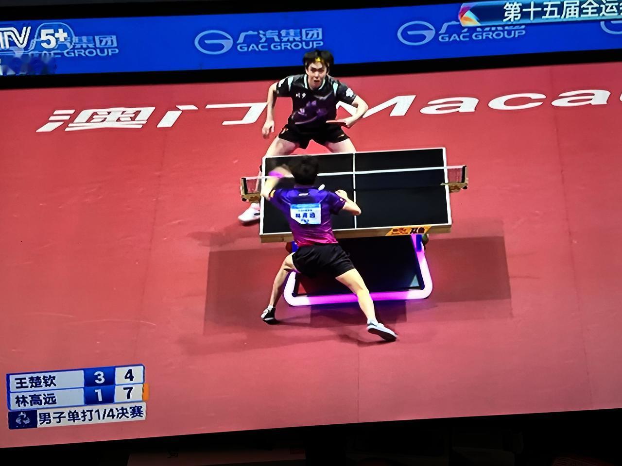 全运会,乒乓球男单四分之一决赛, 王楚钦对阵林高远,王楚钦虽然胜出了顺利晋级,然而,他赢得并不轻松,打了6局,最后险胜。有人在昨晚看电视直播观赛时,看了开始阶段的几局,感觉王楚钦处于劣势,胜出的优势不大,就看不下去没看到结束了。 我那89岁的老父亲就是这样。他昨晚也收看了这场比赛的现场直播,他才看了几局,就觉得王楚钦昨天的表现没有很大的优势,他内心是非常希望王楚钦能胜出顺利晋级的,于是就放弃继续看直播了。今天早上我跟他说起昨晚王楚钦胜出顺利晋级的赛况,父亲感到很惊讶,认为王楚钦在那样的劣势下都能逆转,球技真是不得了啊! 稍后的男单半决赛中,王楚钦的对手是樊振东,谁将胜出晋级决赛?难料!各50%的可能吧?