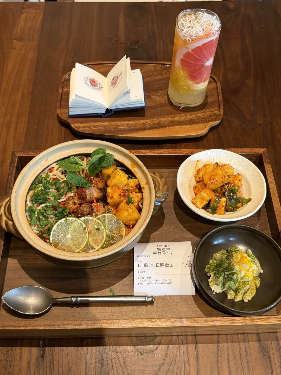 很适合小姐妹聚会还有二人食的小店!!! 每个季节都有不同的美!!夏天满园的荷花,秋天枫叶窗窗景!!野生菌火腿焖饭是我平常比较爱的,底下的米饭会偏干一点点!!!配上一杯小甜甜!!很满足!还有柠檬米线!!味道是目前在长沙还原zui好的一家!!📍舟白
