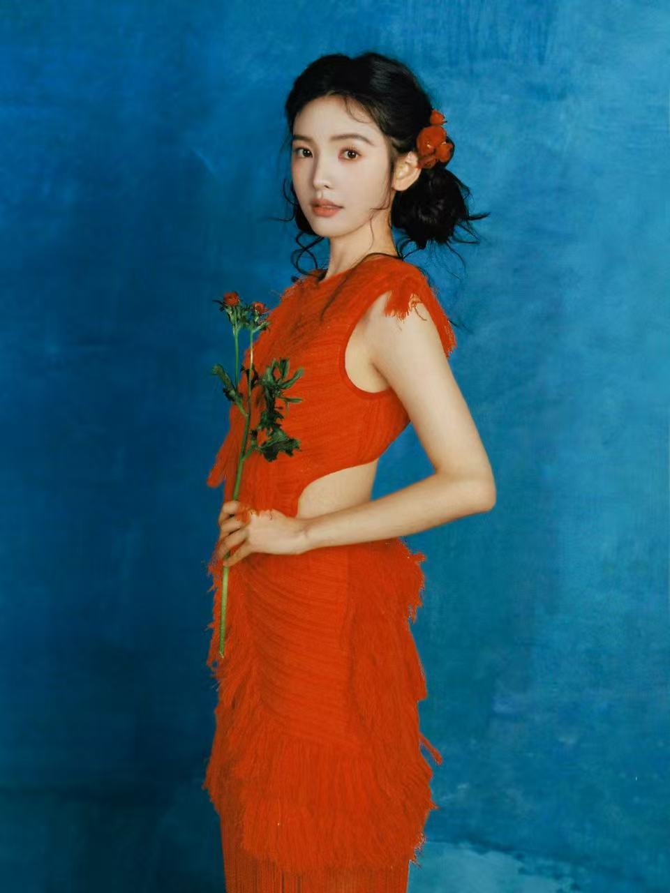 刘亦菲把死亡玫粉穿出了定制款的感觉,这种颜色普通人穿上分分钟黑三度,她居然能穿出
