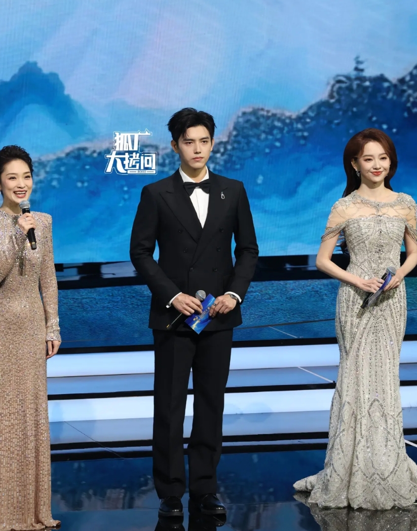 你看今晚的金鸡奖电影节开幕式,他担任主持人稳占C位,甚至左一个央视主持人蓝羽,右一个广电主持人戴小楠为他做配