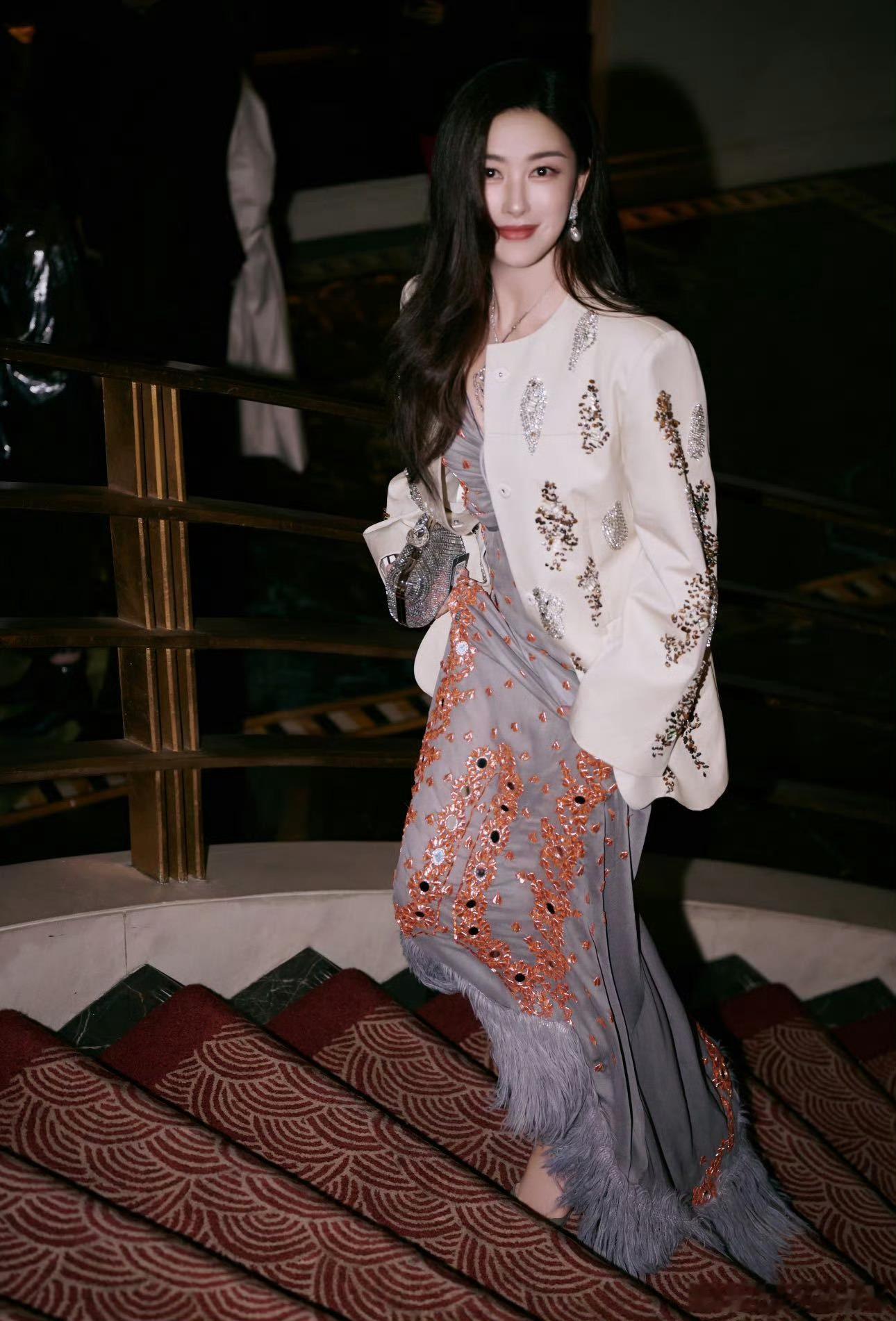 刘亦菲把死亡玫粉穿出了定制款的感觉,这种颜色普通人穿上分分钟黑三度,她居然能穿出