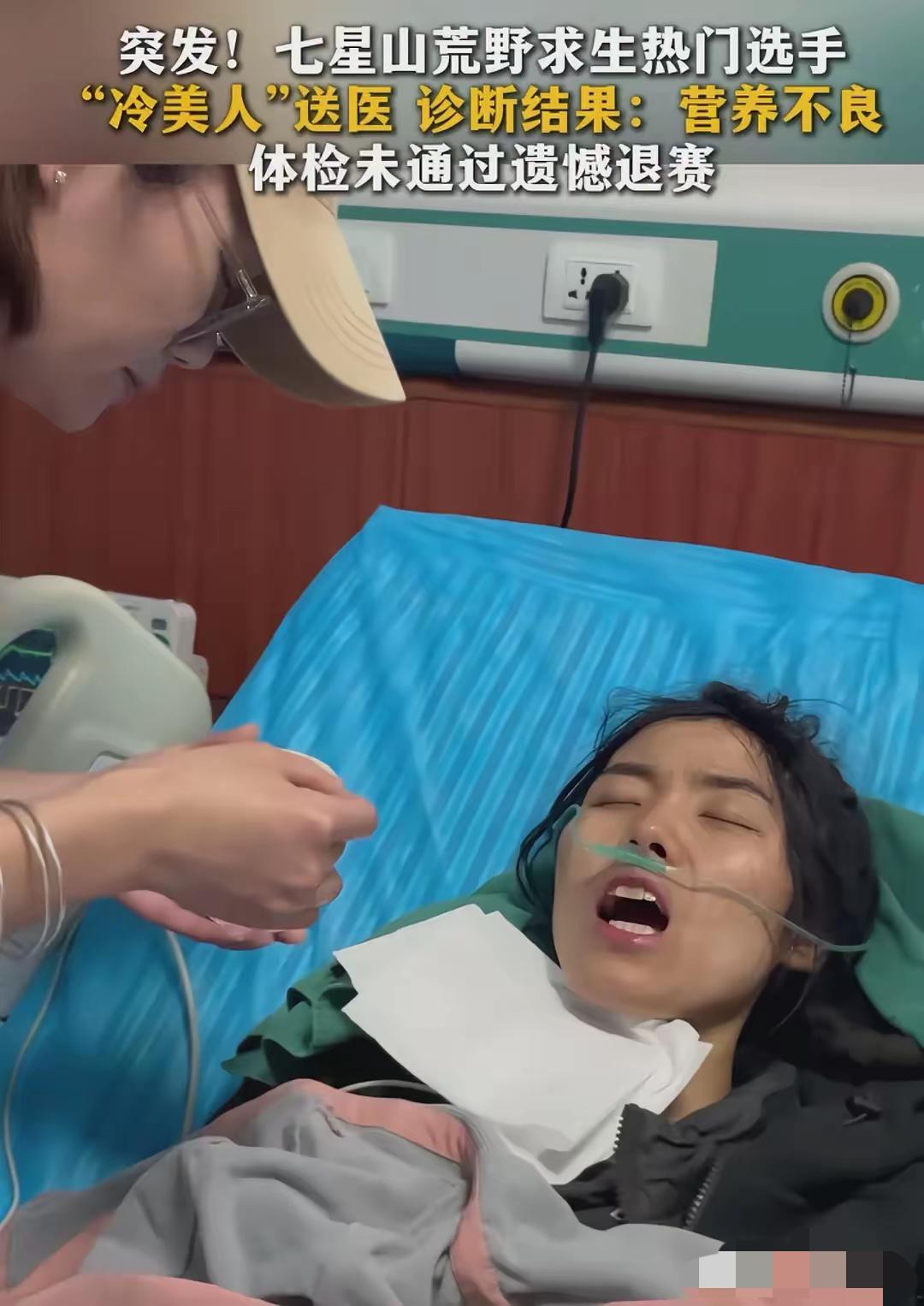 “冷美人”退赛了!谁能想到,扛过暴雨、熬过两次生理期,连发烧39度都啃野菜坚持的姑娘,最后竟因营养不良晕倒在复检现场。 工作人员把她抱去医院时,整个人轻飘飘的,参赛37天瘦了15公斤,指甲缝里全是泥,嘴唇手指裂得全是口子,哪还有半分赛前的模样。她不是实力最强的选手,却是唯一坚持到最后的女选手,痛经打滚误以为是肠梗阻都没放弃,这份韧劲早超越了比赛本身。 所谓的体检不合格,不过是身体替她喊了停。极限挑战从不是硬扛到垮,懂得敬畏身体才是真的勇敢。她没拿到20万奖金,却赢了无数人的敬意,这才是女性力量最动人的样子。 你觉得“冷美人”的坚持值得吗?如果是你,会为了挑战极限拼到这份上吗?