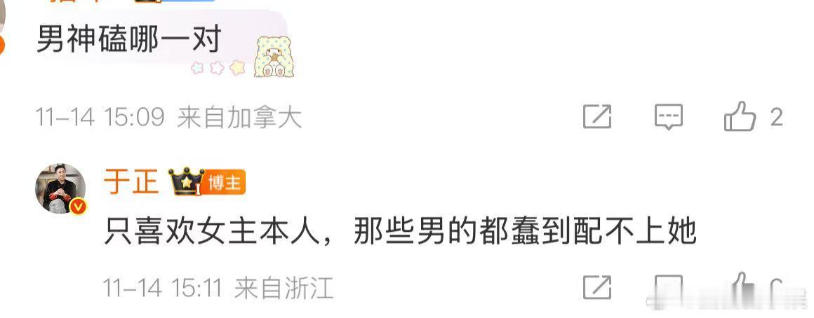 于正这波对《亲爱的X》的发言太抓马了,网友让他瑞平女主他说好看,问磕哪对直接说只