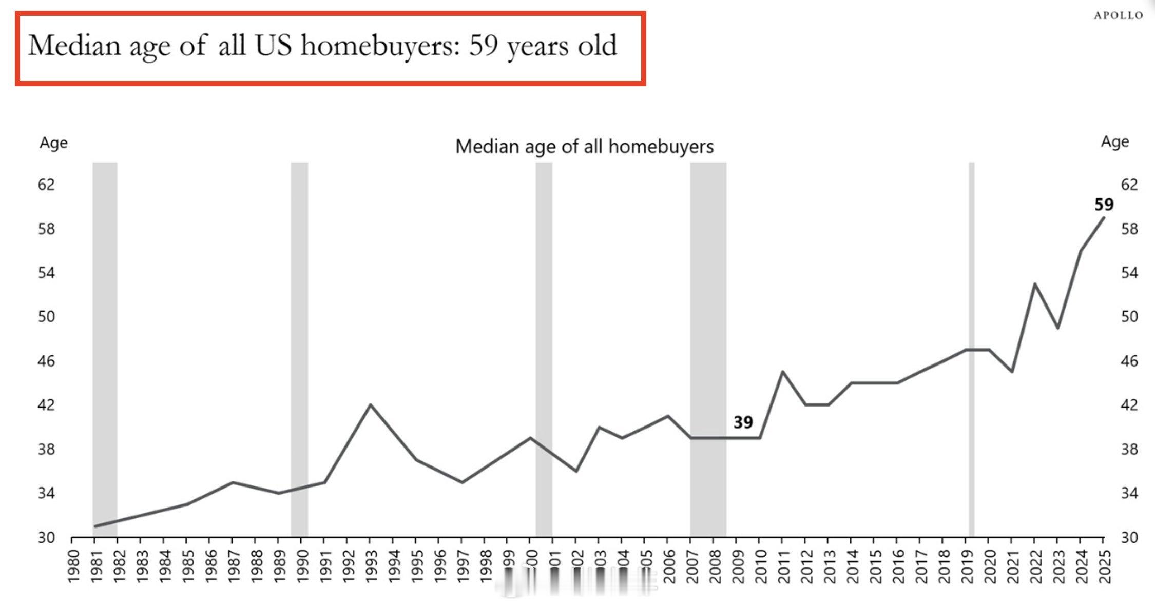 【】“美国梦”破灭了吗? 2010年,美国所有购房者的年龄中位数为39 岁。 而今天, 这个数字是59。