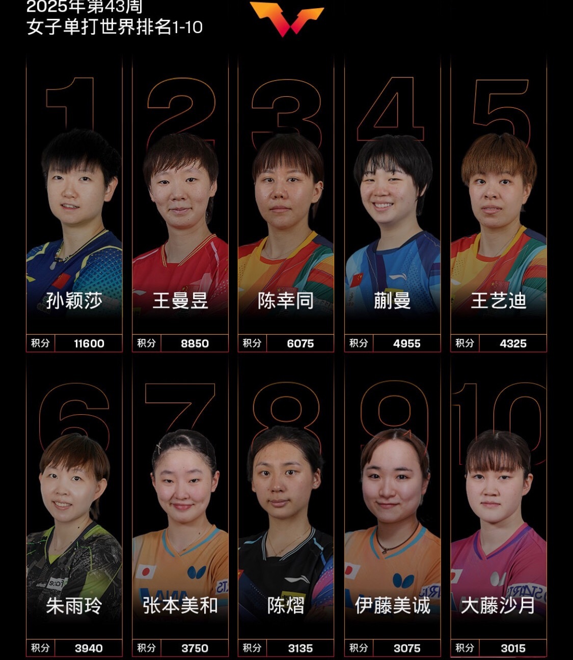 新一期国际乒联排名太提气!男单王楚钦以10900分稳居榜首,林诗栋紧随其后位列第二,分差呈现断层优势;女单孙颖莎带着11600分实现171周霸榜,王曼昱牢牢占据次席,国乒甚至包揽了女单前五席位。从"万分先生""万分女王"的认证,到训练馆里日复一日的坚守,这份榜单是实力最直接的证明。国乒的统治力从不是偶然,而是每一次挥拍都藏着的底气!