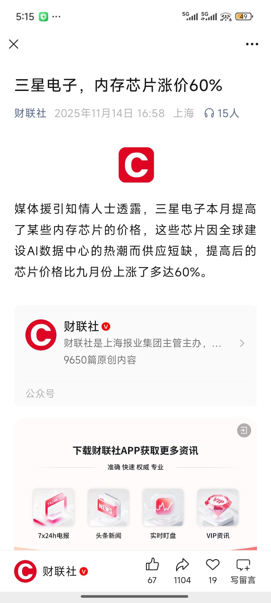 昨晚美股的闪迪大跌,导致今天a股内存芯片板块大幅度下挫。a股内存板块已经连续上涨,幅度非常大,好多个股甚至已经涨了2~3倍。 那是不是意味着到顶了呢? 收盘之后又出了一个利好消息,说三星准备下月提价,内存提价60%,这会刺激内存芯片板块的,下周仅仅是反弹是回光返照呢,还是会再续一波?我觉得应该是持有内存芯片股友们趁势反弹出货,反弹出票的一个好时机吧。 短期芯片股价应该是透支了,持续进一步大涨的可能性比较小,最多可以挖掘一下低位的存储股票,再挖掘挖掘。芯片股行情 存储芯片行情 存储芯片概念股 芯片板块 半导体芯片股票 存储半导体行业 半导体芯片股
