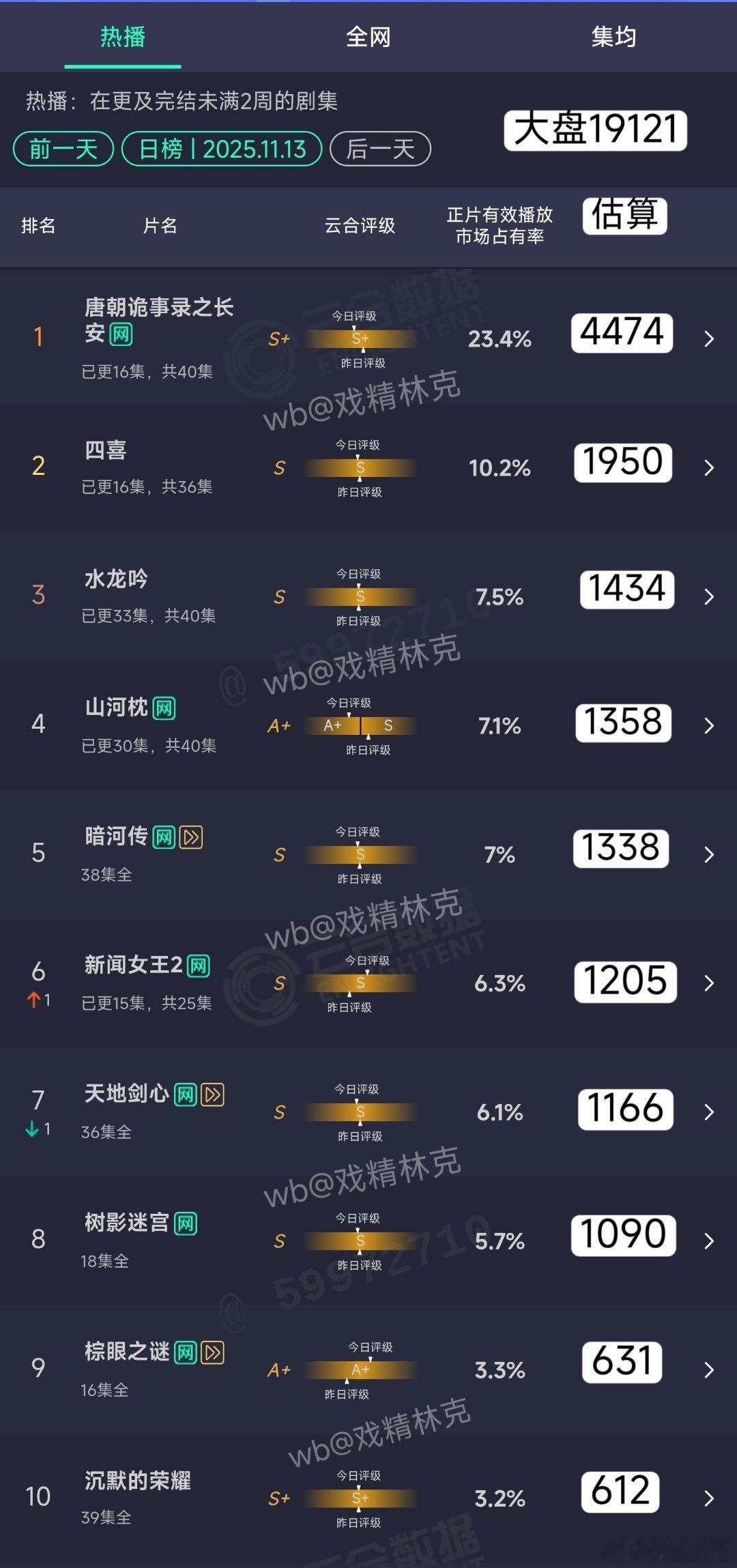 任嘉伦和彭小苒的 今日开播,浅压云合热播集均500~1000万。扑是肯定扑了