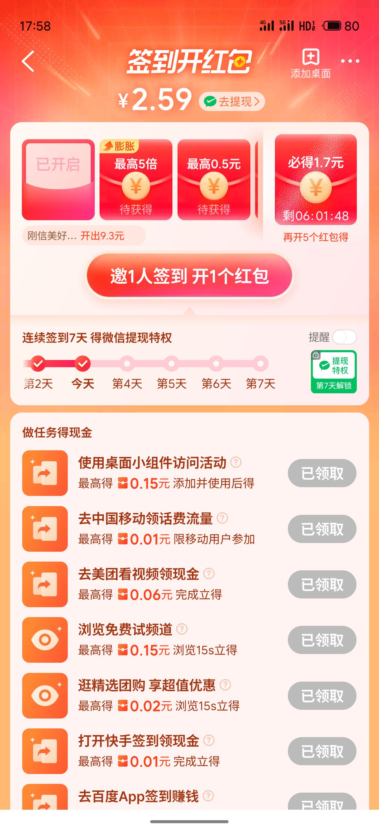 所有任务完成用了不到五分钟 这次得了0.13 离三不远了 🈵三可以提现 收益准时到账 免费薅羊毛 APP薅羊毛