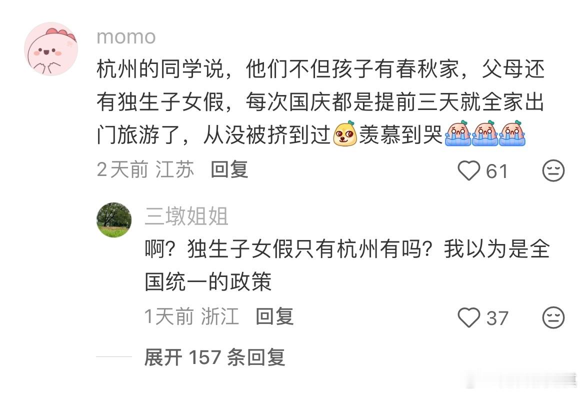 是哪里有假啊?是我们浙江啊!!春秋假、育儿假、独生子女假,应有尽有…