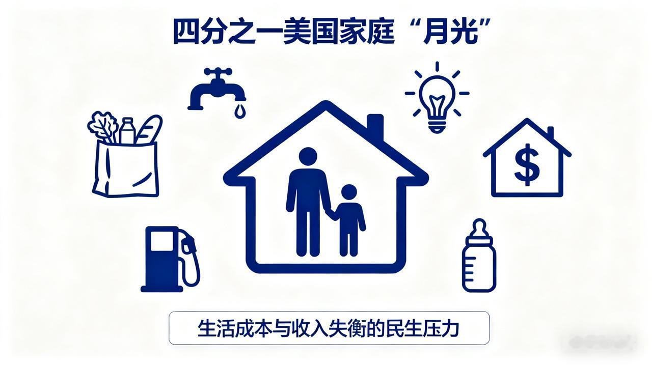 美国家庭也是“月光族”! 美国银行研究所最新分析报告指出,每四个美国家庭中就有一个正陷入“月光”的生活状态——研究团队调取了数百万客户的内部数据,重点追踪了他们在食品杂货、住房、汽油、育儿及水电等刚性支出上的消耗情况。 在我看来,美国大环境也不好,加上生活成本与收入增长的失衡:一些必需品价格持续上涨,而普通家庭的收入增长却难以跟上节奏,最终导致“月光光”的被动局面,背后反映的是美国民生层面的现实压力。