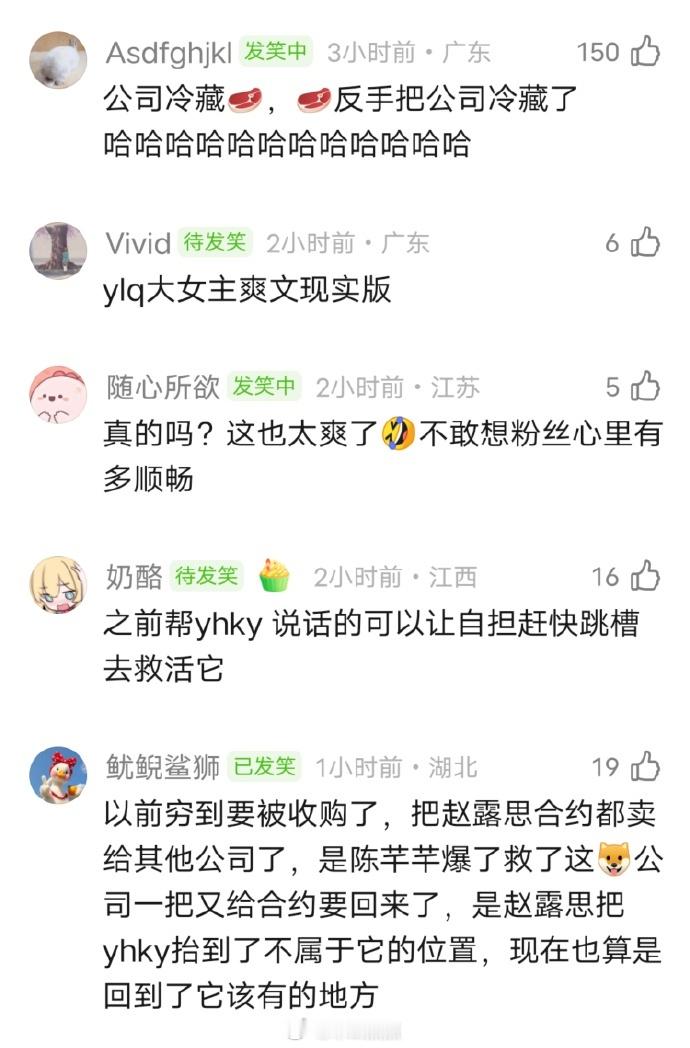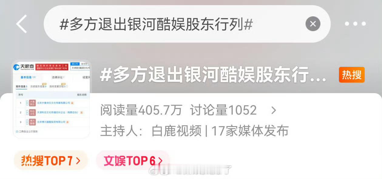 ?咋说呢…没有赵露思的银河酷娱变动这么大啊?她看起来是真的离开银河酷娱了~多方股东也已经退出了🥩走了银河酷娱就倒闭了,这是真花粉天堂,娱乐圈大女主爽文现实版…赵露思回旋镖体质,被公司冷藏,然后反手把公司冷藏了。。。赵露思也挺牛的,还真是顶梁柱,一没她就不行 和公司干仗,把公司干倒闭了