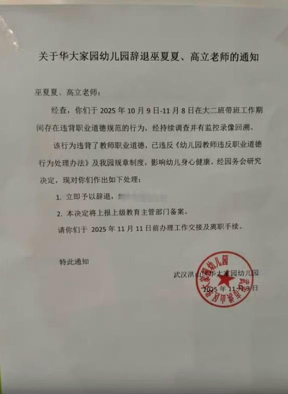 曾经实名举报武汉大学杨景媛论文存在学术造假的博主“李然于心”透露,他的儿子在幼儿园遭两名幼师长期霸凌,目前那两名涉事幼师已被园方辞退。