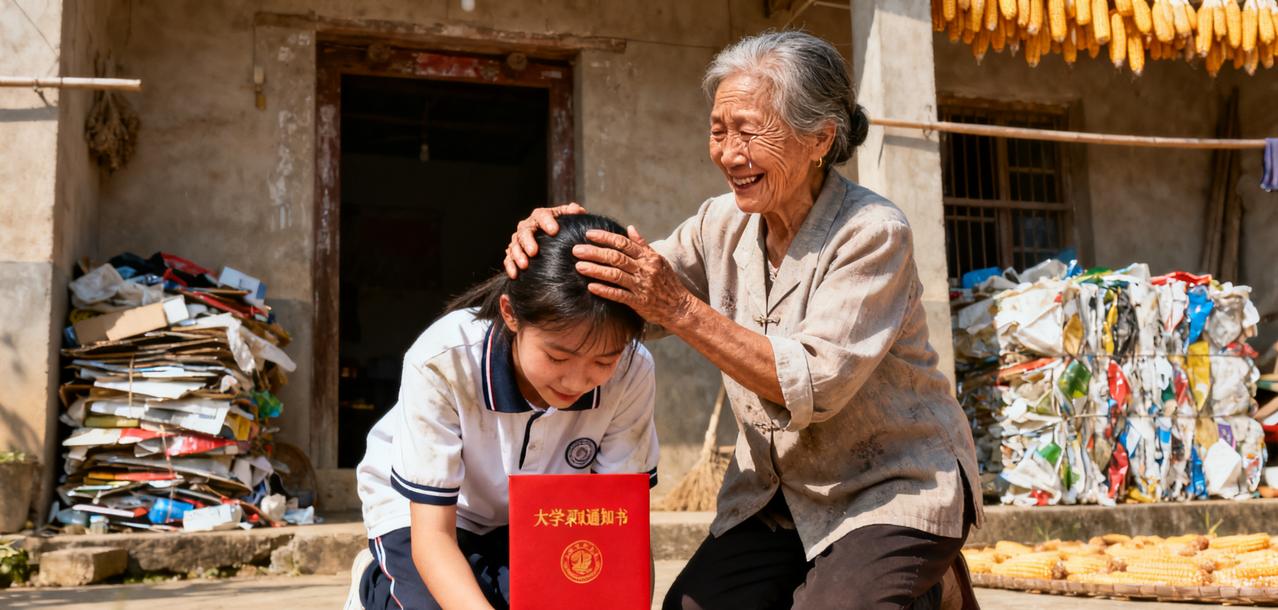 拾荒20年, 七旬婆育弃婴考名校🔥 垃圾桶旁的一声啼哭,成了七旬拾荒婆李奶奶20年牵挂的开端。那年寒冬,她在废纸堆里发现襁褓中的女婴,冻得发紫的小脸缩成一团,身边只有半片干瘪的奶嘴。围观者劝她:“自身都难保,别自讨苦吃!”可李奶奶抱着孩子暖在怀里,红着眼眶说:“是条命,我得养。” 从此,破旧的三轮车成了母女俩的家。李奶奶凌晨三点就出门拾荒,纸板、塑料瓶攒着换钱,自己啃干馒头就咸菜,却给孩子买新鲜奶粉;冬夜舍不得开灯,就借着路灯教孩子认字,布满老茧的手握着铅笔,一笔一划写满认真。 孩子懂事后,看着奶奶佝偻的背影,偷偷在拾荒袋里塞自己省下的作业本。别人嘲笑她“拾荒娃没出息”,李奶奶却拍着胸脯:“我娃有志气,将来能上大学!”为了凑学费,她戒掉了吃了几十年的降压药,偷偷去工地帮人搬砖,手上的裂口结了又破。 谁也没想到,这个在垃圾桶旁捡来的女孩,竟凭着一股韧劲考上重点大学!收到录取通知书那天,女孩跪在奶奶面前磕了三个头:“奶奶,没有你拾荒养我,就没有我的今天!”李奶奶摸着通知书,皱纹里都淌着泪,手里还攥着刚拾来的塑料瓶。 20年拾荒路,捡来的是弃婴,养大的是希望。不是亲生,却倾尽所有;生活清贫,却富得流油。这份跨越血缘的母爱,比名校文凭更耀眼! 人间大爱 学霸养成 底层之光 愿每一份善良都被温柔以待,每一份坚守都有回响!