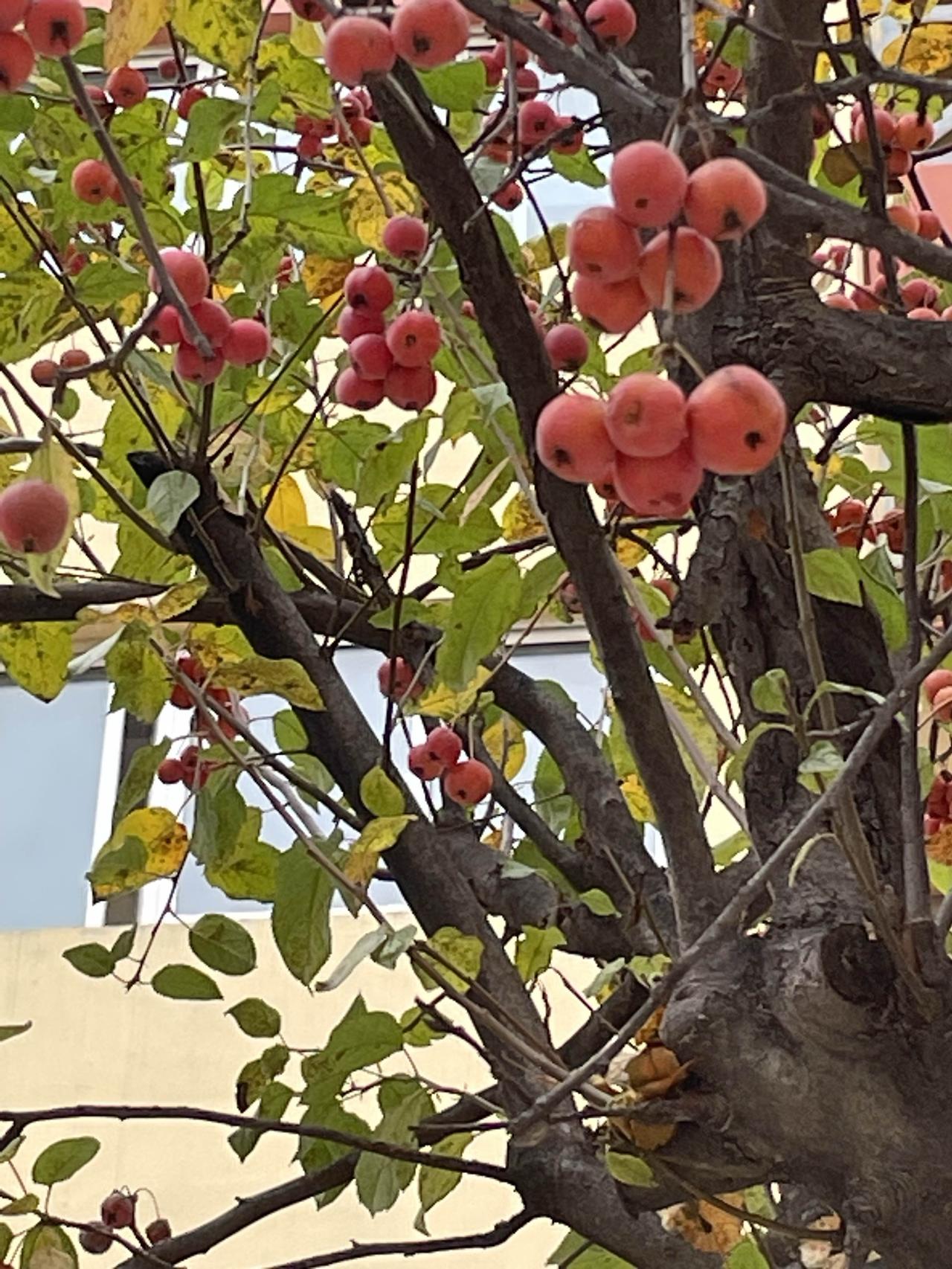今天早上,我闲着没事,到一个社区找朋友,结果,我发现这个社区与众不同,是什么与众不同呢?原来,她们的社区几颗树上,结了很多像苹果一样的果实。 我望着树上密密麻麻的苹果,急忙用手机拍了下来。这时,一个皮肤白嫩,肌肤靓丽的女士走了过来,边走边低头在地上捡拾了苹果,同时张口吃了起来!我问她,这是什么树?苹果怎么结的密密麻麻的呢?女士笑着说:我也不知道这是什么苹果,我就是喜欢吃。 奇怪,天底下还有这么密集的苹果,长这么大,今天算是见识了。